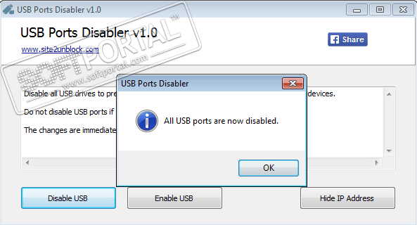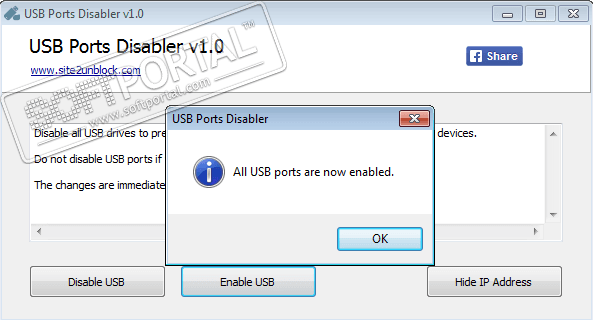 Работать с инструментом легко, т.к. тут нет никаких настроек, а только 2 кнопки: отключить (Disable USB) и задействовать (Ensble USB). Так что вы сможете очень быстро блокировать порты USB, ограничивая других пользователей в использования USB-накопителей на своем компьютере.