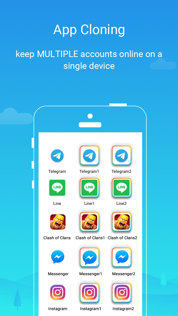 Программа создает отдельную виртуальную среду, в которой второстепенный аккаунт будет самостоятельно работать, независимо от основного. При запуске программы необходимо выбрать приложение, которое нужно клонировать, далее оно помещается в специальное меню и создается ярлык на рабочем столе для быстрого запуска. При этом как основное, так и клонированное приложение, работают параллельно, поэтому можно получать уведомления сразу на оба аккаунта.