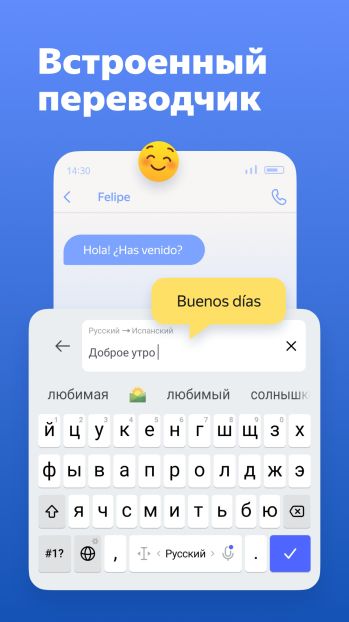 Яндекс.Клавиатура - удобная клавиатура для мобильных устройств на базе Android от компании Яндекс, которая объединяет в себе все необходимые функции для быстрой и увлекательной переписки. Присутствует возможность быстро переключаться между раскладками клавиатуры, доступны готовые наборы гифок на разные темы и удобный поиск картинок в интернете, имеется встроенный словарь и переводчик.