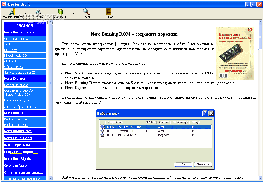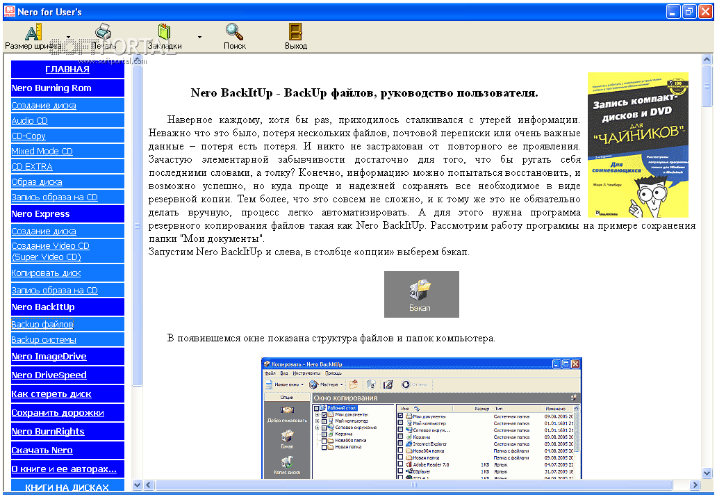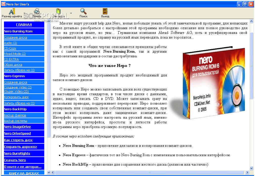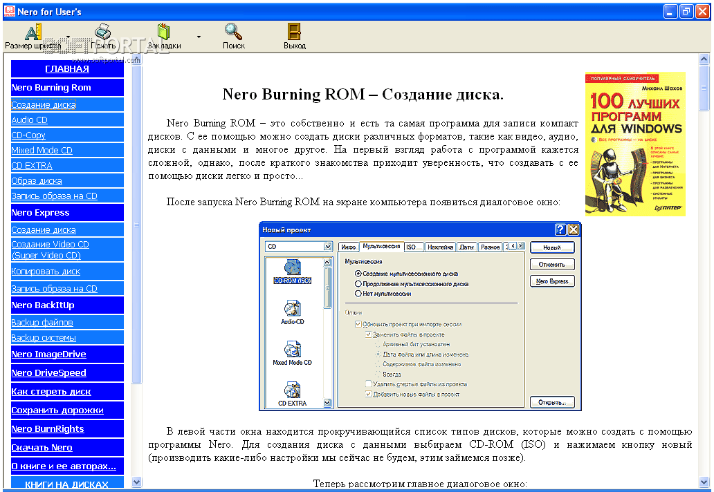 NERO Burning Rom для пользователей - эта бесплатная электронная книга представляет собой самый полный иллюстрированный учебник по пакету программ Nero на русском языке. Научитесь записывать CD и DVD диски всех типов и форматов с помощью Nero!