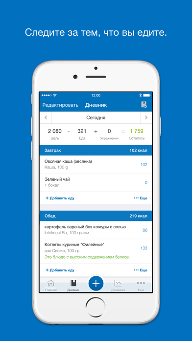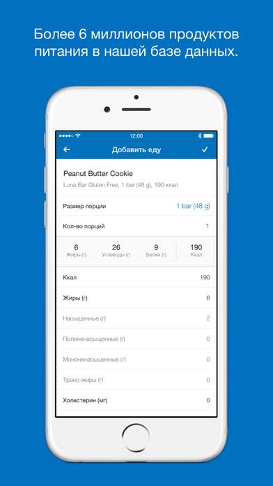 MyFitnessPal – бесплатный и удобный в эксплуатации счетчик калорий для iPhone и iPad, включающий в себя огромную пищевую базу данных из более чем 4 000 000 наименований. Присутствует возможность создания собственных блюд и упражнений, имеется статистика по основным питательным веществам, отчеты о динамике, встроенный сканер штрих-кодов и пр. Также пользователю доступно более 350 физических упражнений, статистика как по кардио-, так по и силовым тренировкам, включая число подходов, повторов и вес в повторе.