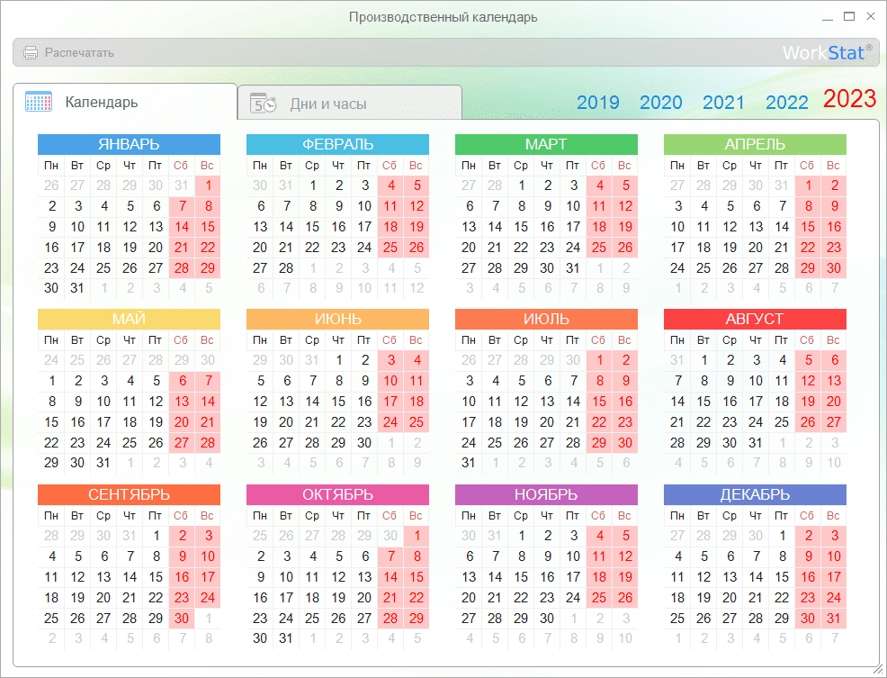 Производственный календарь - программа, которая отображает все рабочие, выходные и праздничные дни в соответствие с действующим законодательством и принятым Постановлениями Правительства РФ «О переносе выходных и праздничных дней».