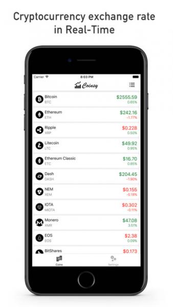 Coinsy - простое в использовании приложение для iPhone, iPad и iPod touch, которое отображает текущие курсы криптовалюты в реальном времени. Присутствует поддержка более 250 криптовалют, а также доступен виджет для просмотра курса выбранных криптовалют не заходя в приложение.