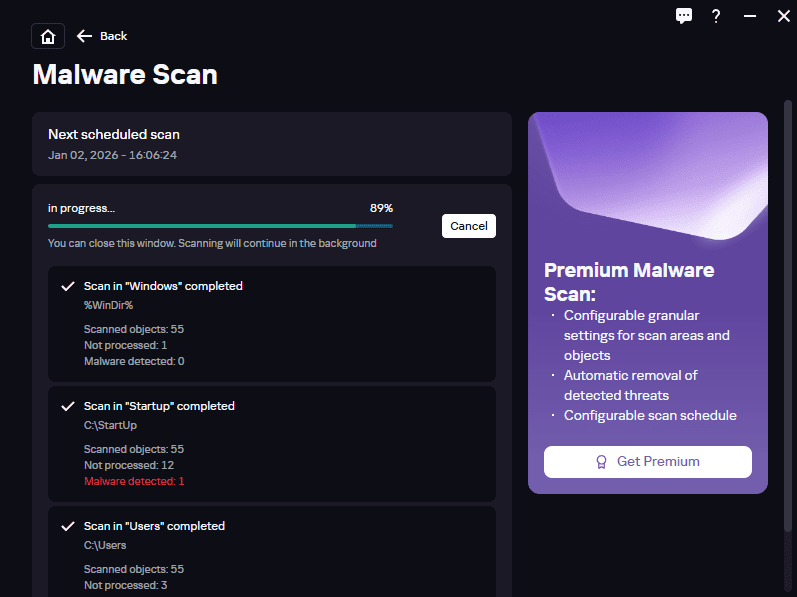 Приложение совместимо со сторонними антивирусными программами и может служить дополнительной защитой от троянов-вымогателей и шифровальщиков с использованием передовых технологий.