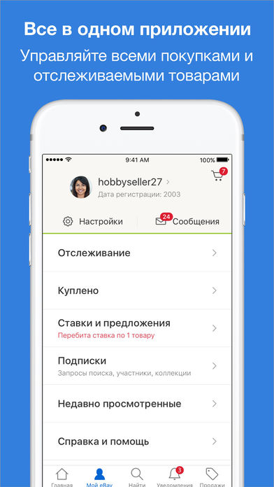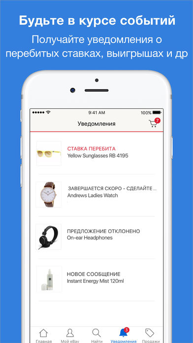 - Настраиваемые оповещения о товарах и действиях на eBay.