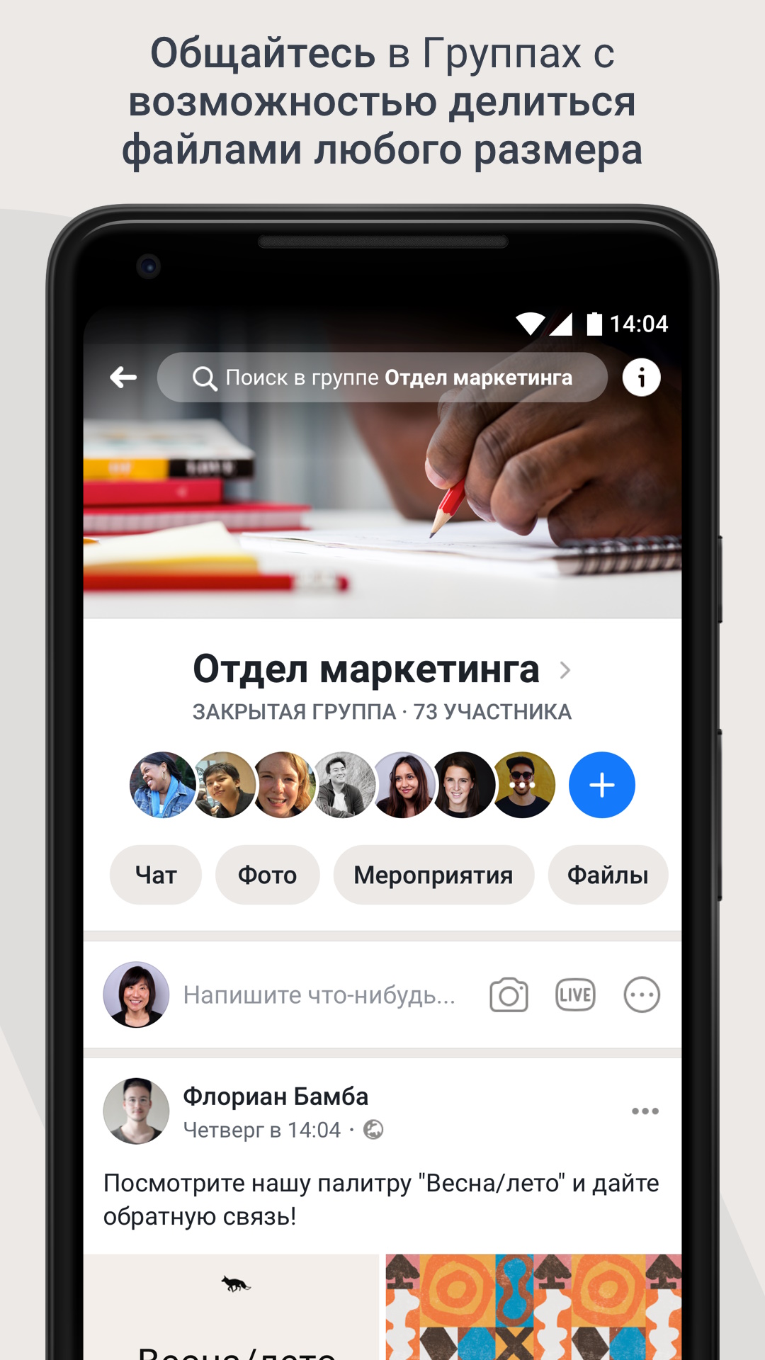 Workplace — пространство без рекламы, которое совершенно не зависит от вашего личного аккаунта Facebook.
