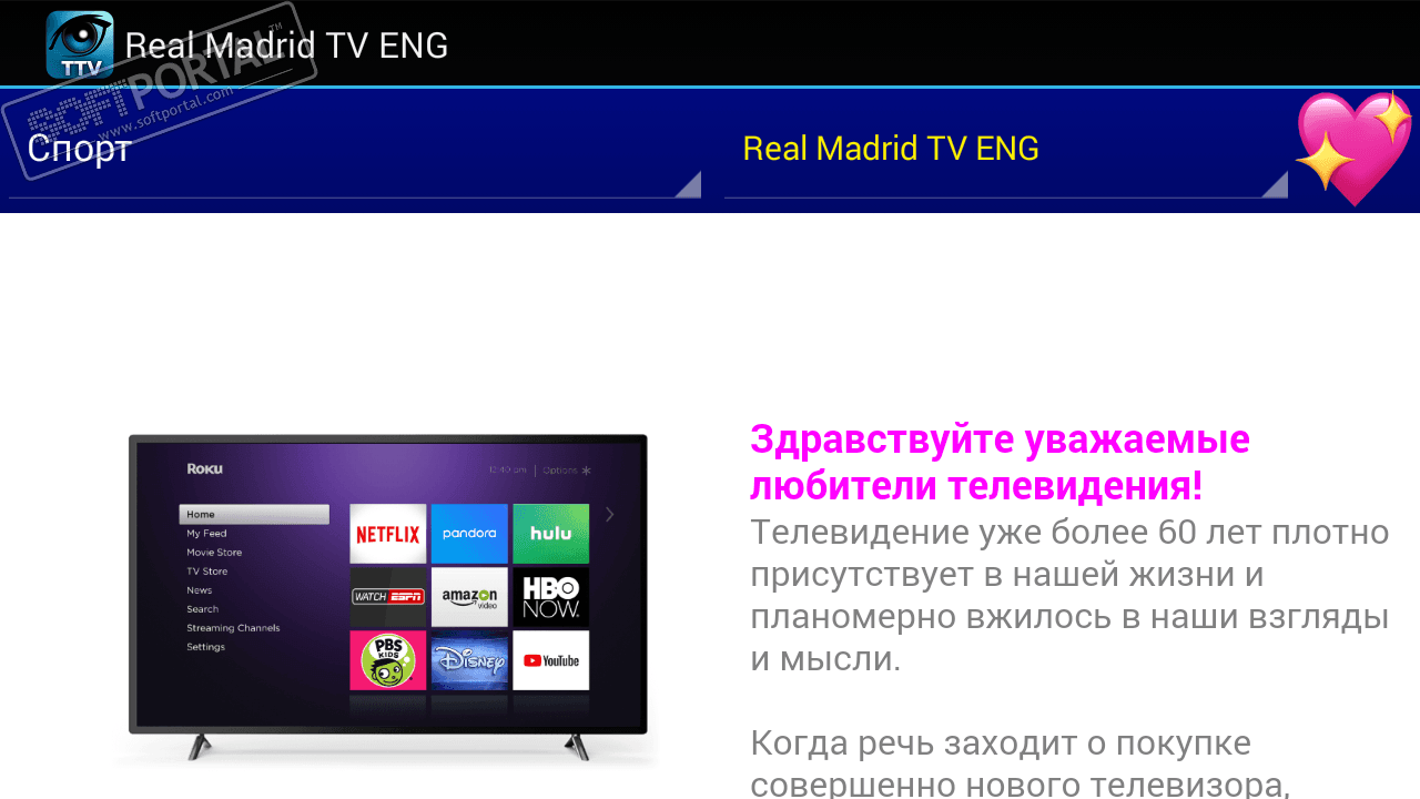 Программа хорошо адаптирована к работе на устройствах Smart TV с пультом управления. Прекрасно работает как на телефонах, так и планшетах.