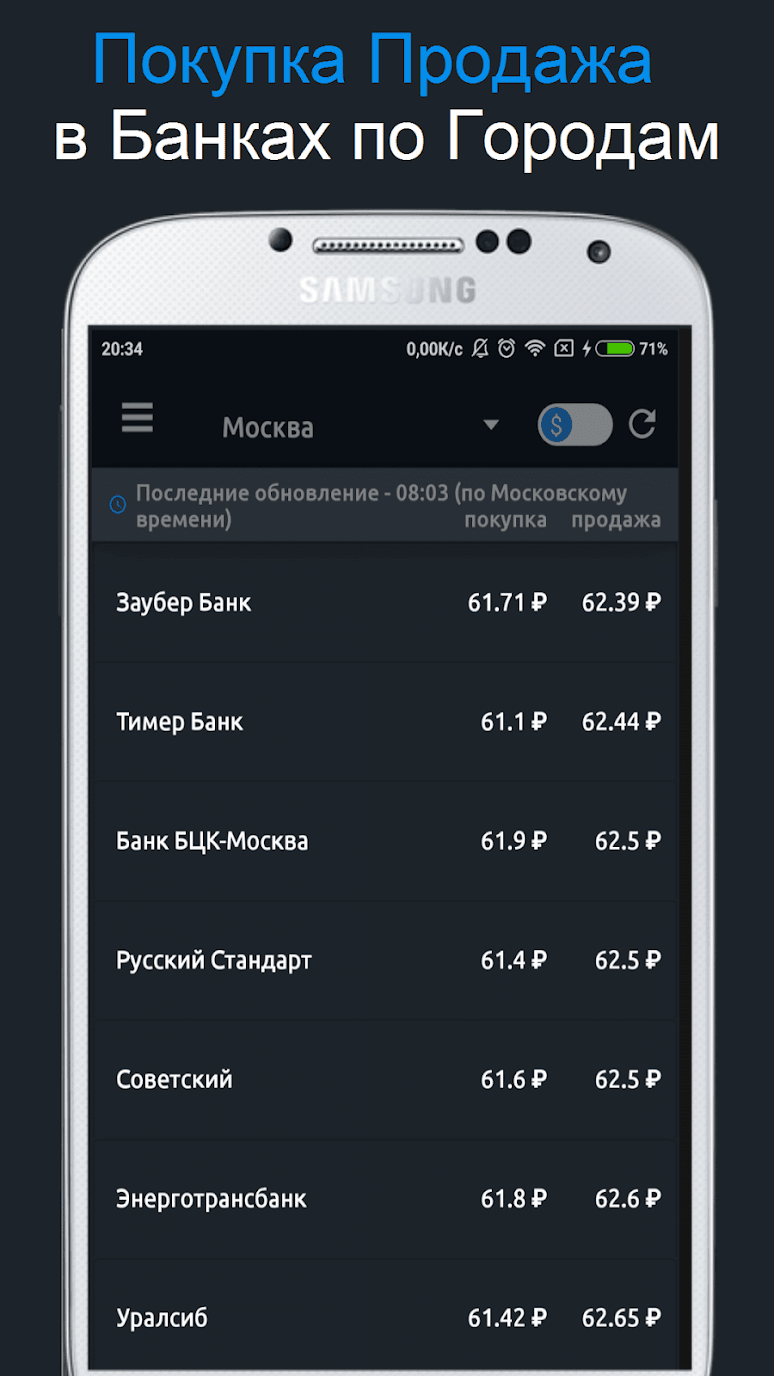 - Прямая котировка покупки/продажи Доллара и Евро в банках разных городов РФ.
