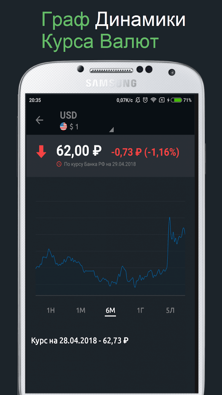 Подробный график динамики курса позволяет принять решение о том, когда самое лучшее время для обмена или вложений/инвестиций. Доступны более 30 типов валют по курсу Центрального Банка РФ (Доллар, Евро, Фунт стерлинг, Швейцарский франк, Японских иен и т.д.).