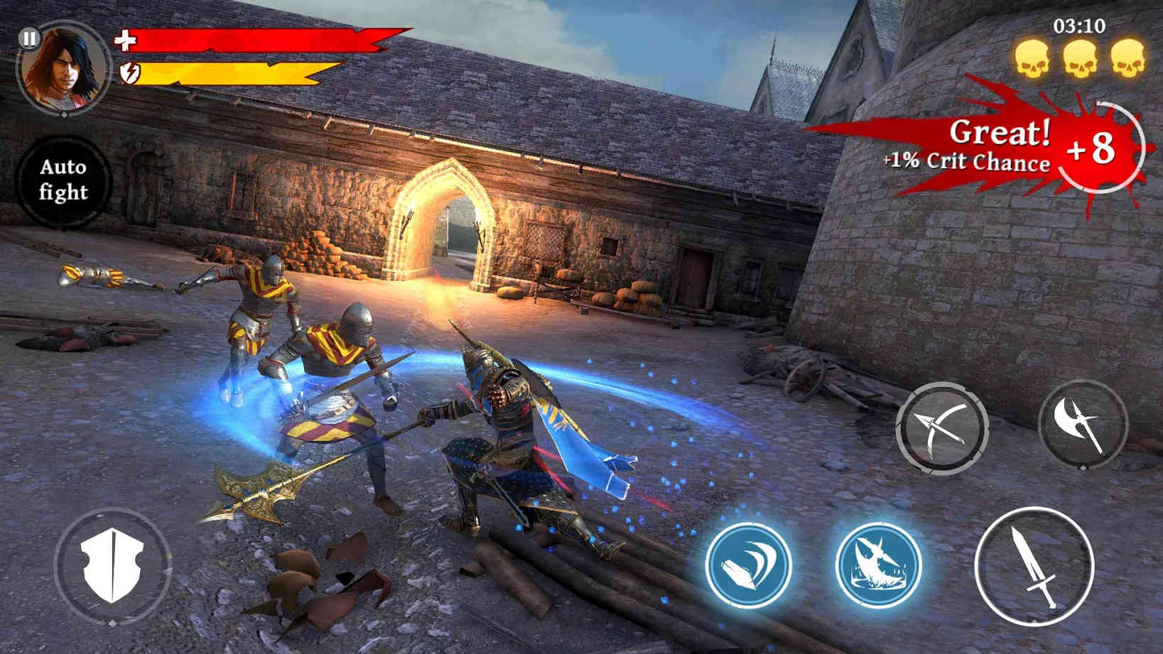 Управление в игре Iron Blade очень несложное. Есть даже режим автоматического боя, что позволит вам насладиться зелищем и качественной графикой.