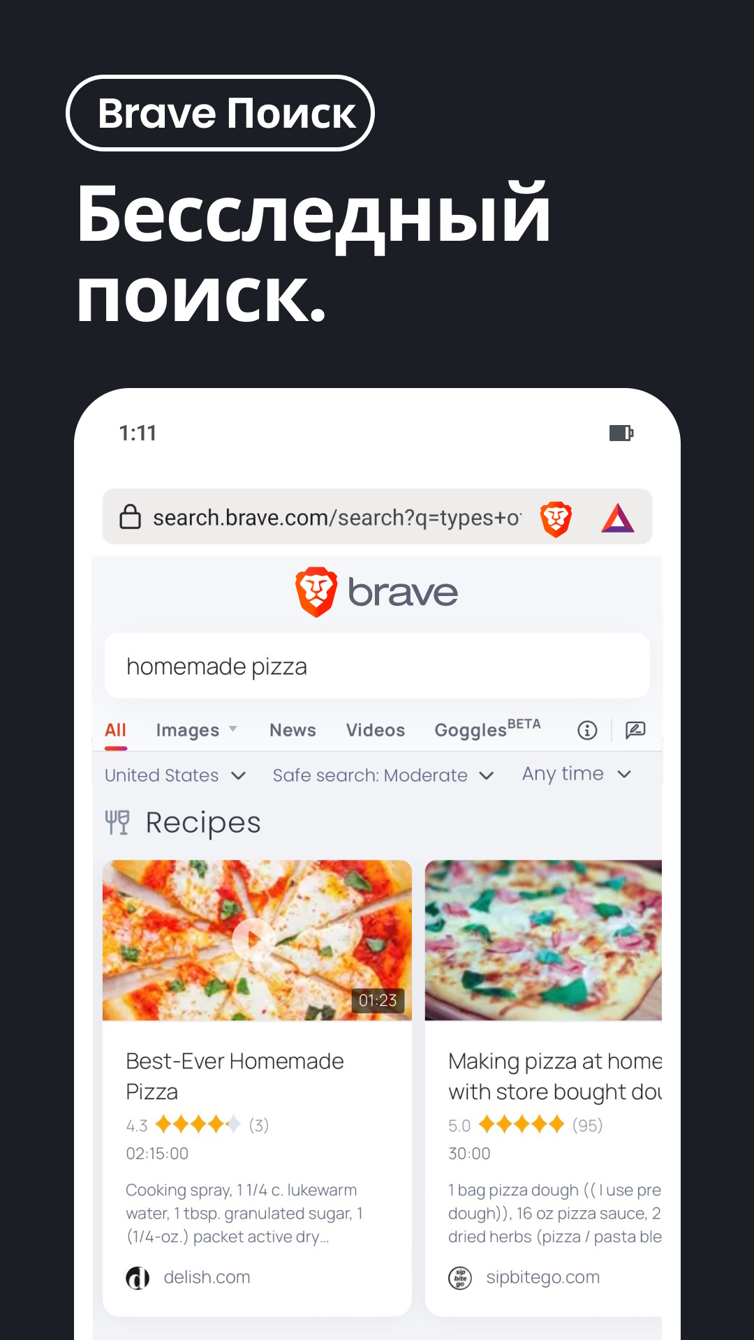 Браузер предоставляет безопасную систему поиска и просмотра информации в сети, без всплывающих окон, вредоносных программ и других помех. Также Brave уменьшает время загрузки страниц, увеличивает производительность и защищает от рекламных объявлений, зараженных вредоносными программами.