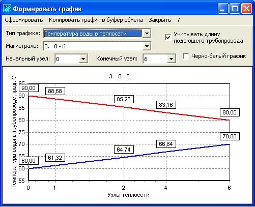 - для каждого конечного узла теплосети можно указать разность между температурой воды в подающем трубопроводе и температурой воды в обратном трубопроводе;