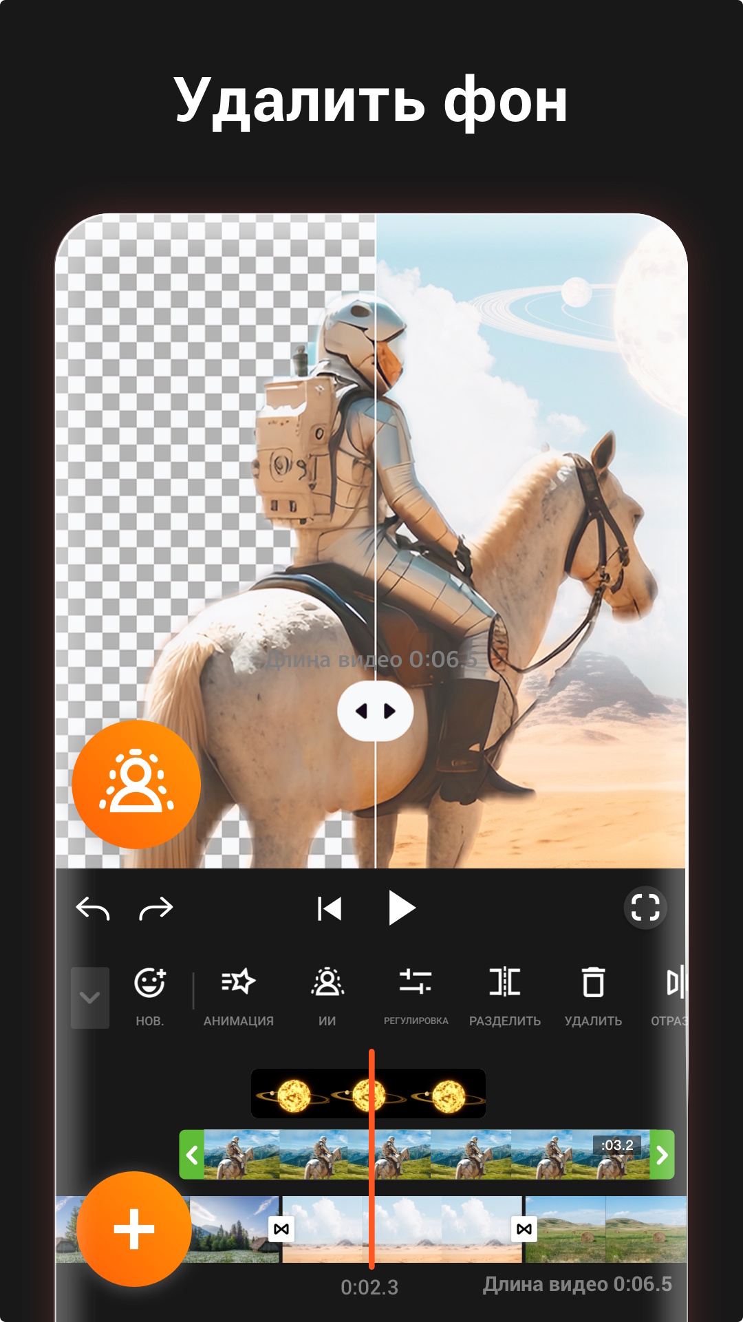 - Возможность делить видео на части и нарезать из них отдельные клипы.