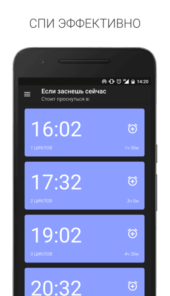 Sleep Time - приложение поможет вам рассчитать время, чтобы заснуть или проснуться так, чтобы сон был кратен средней продолжительности цикла сна (90 минут), поскольку многие специалисты рекомендуют спать в интервалах, кратным циклам сна.
