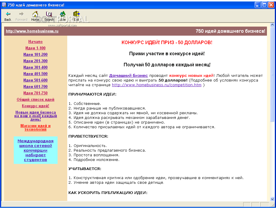 Сборник 750 идей домашнего бизнеса - cборник идей домашнего бизнеса, собранный автором за 7 лет (с 2000 года) ведения рассылки "Домашний бизнес". Объем - 750 страниц. В сборнике опубликованы условия конкурса идей, в котором может принять участие любой желающий и выигрывать каждый месяц по 50 долларов!