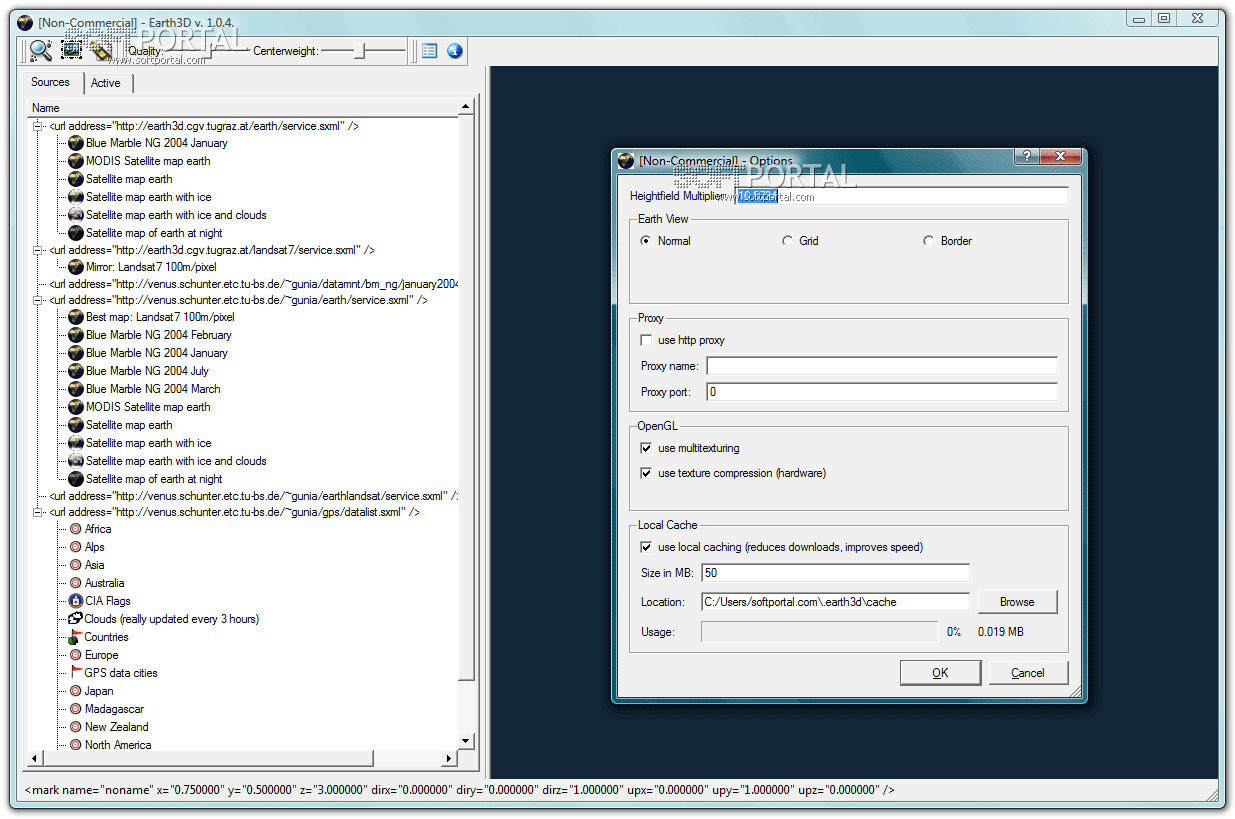 В Earth3D используются данные от NАSА, USGS, CIA, которые при первом требовании загружаются через Интернет.