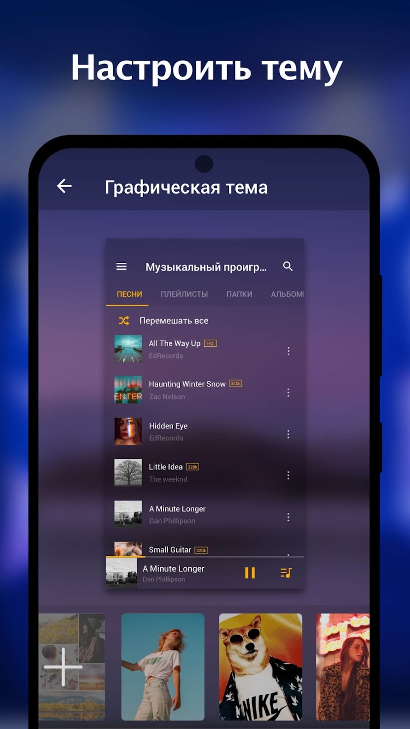 Отличный Музыкальный плеер с эквалайзером (с усилением басов, эффектом эха и т.д.), поддержкой всех форматов (включая MP3, MIDI, WAV, FLAC, AAC, APE и т.д.) и стильным пользовательским интерфейсом. Присутствует возможность выбрать понравившийся цвет или тему оформления.