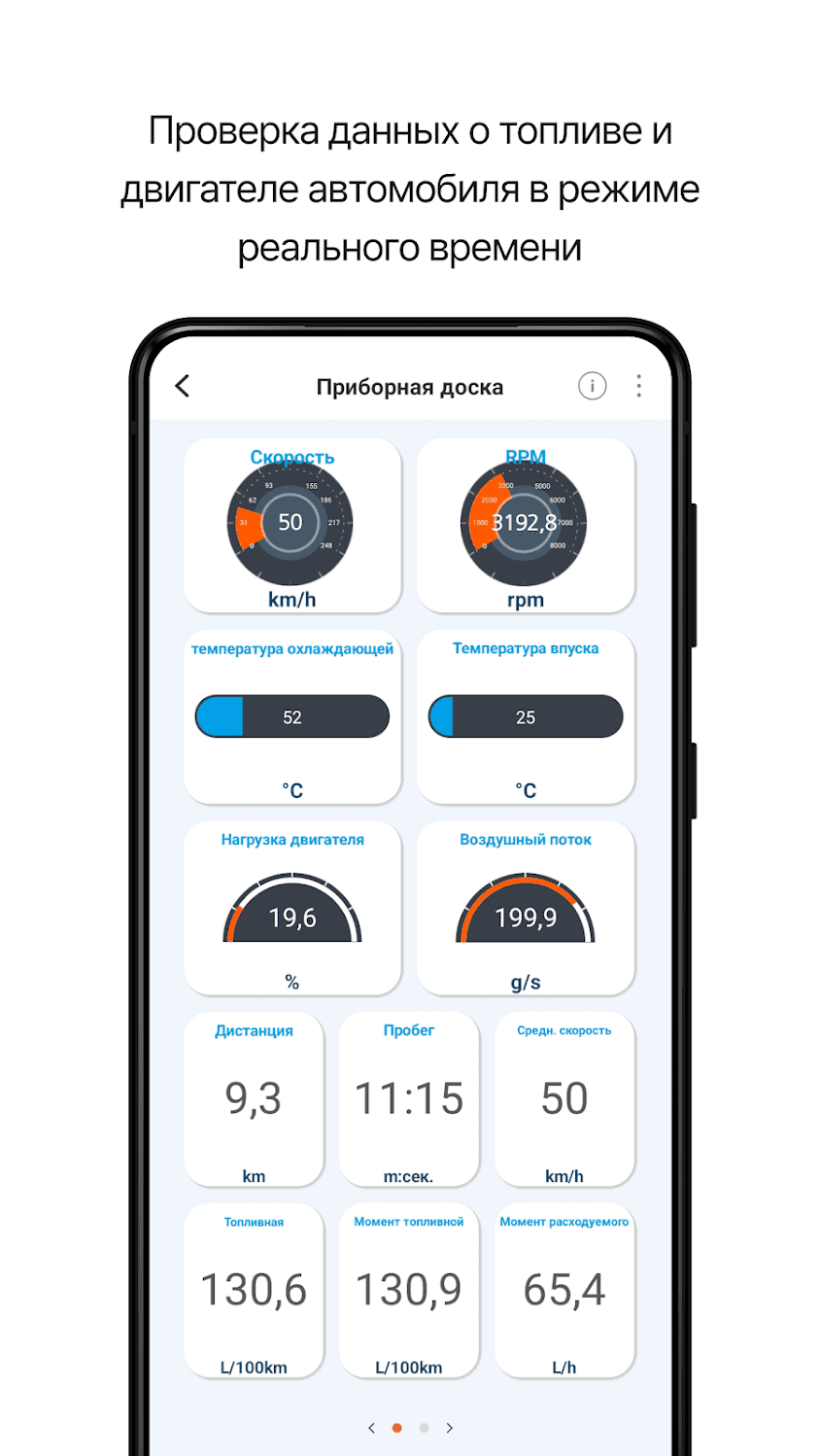 - Проверка экономии топлива в режиме реального времени и его остатка.