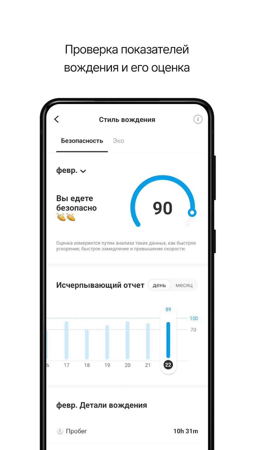 - Проверка вашего показателя безопасного вождения/экономного вождения.