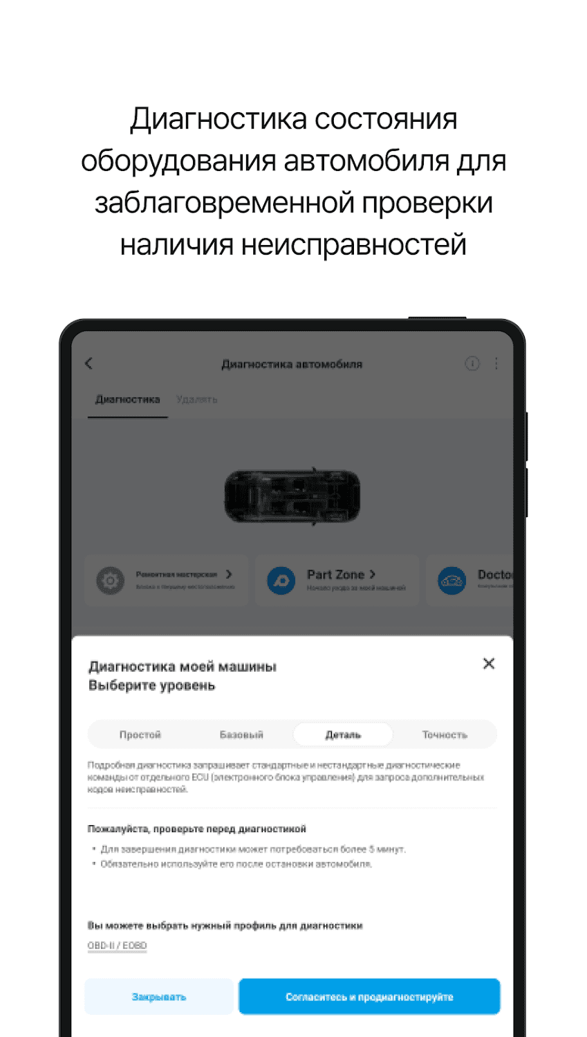 Мобильное приложение для профессиональной диагностики автомобиля. Присутствует...