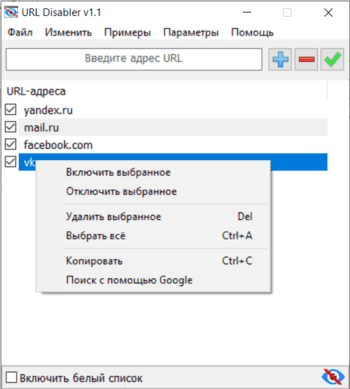 URL Disabler - это бесплатное и портативное программное обеспечение для упрощения процесса блокировки URL для пользователей Google Chrome, Firefox и Edge. Присутствует возможность свободно добавлять, изменять, экспортировать и импортировать список URL, подлежащих блокировке.