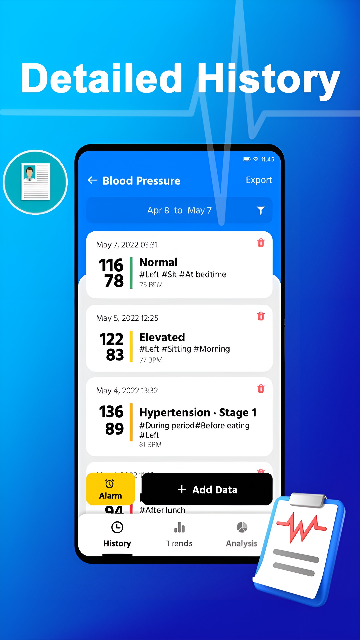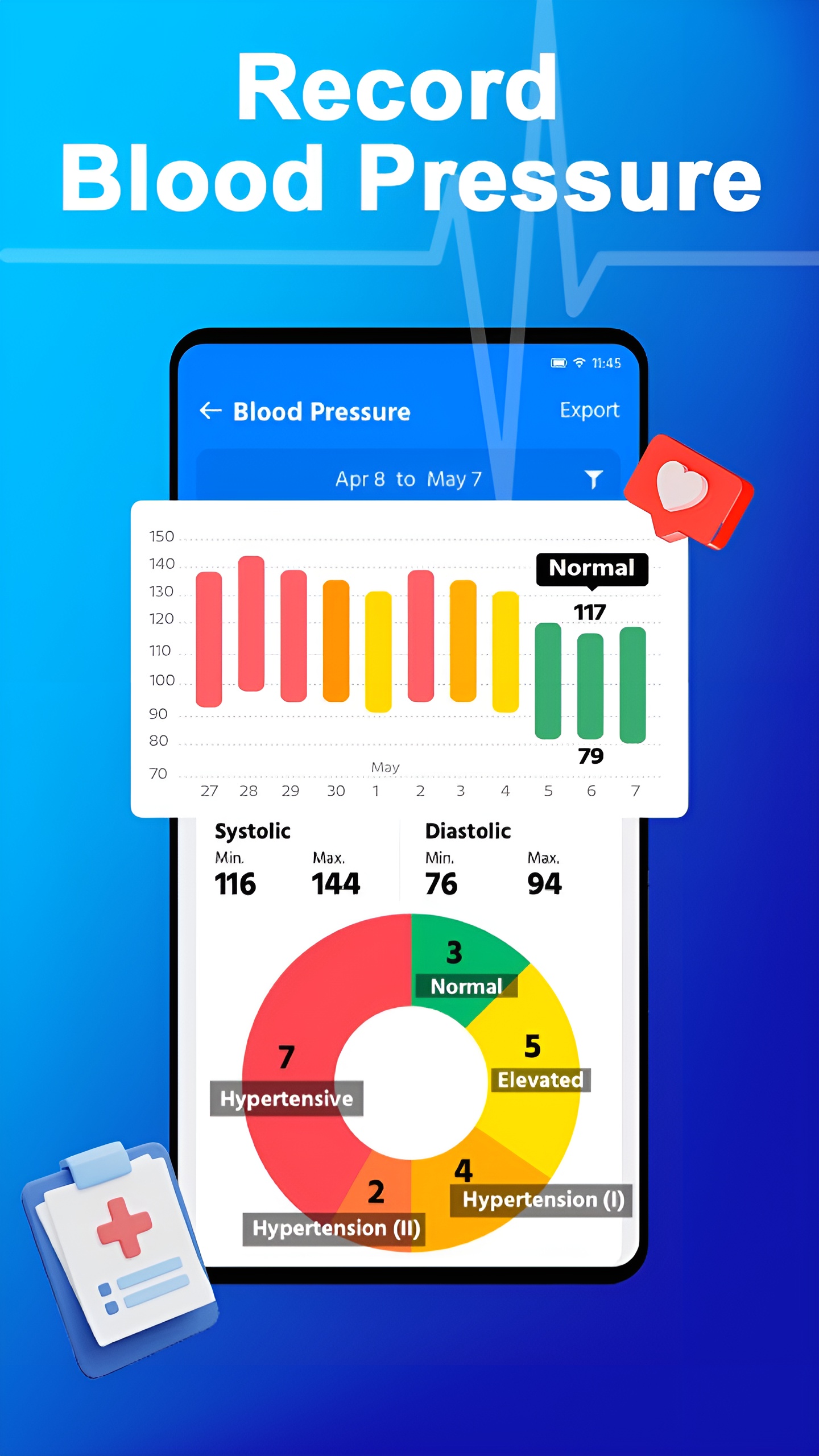 Blood Pressure Pro Tracker - это инструмент, который может помочь вам поддерживать здоровое сердце, анализируя и визуализируя ваши дополнительные данные об артериальном давлении и частоте сердечных сокращений.