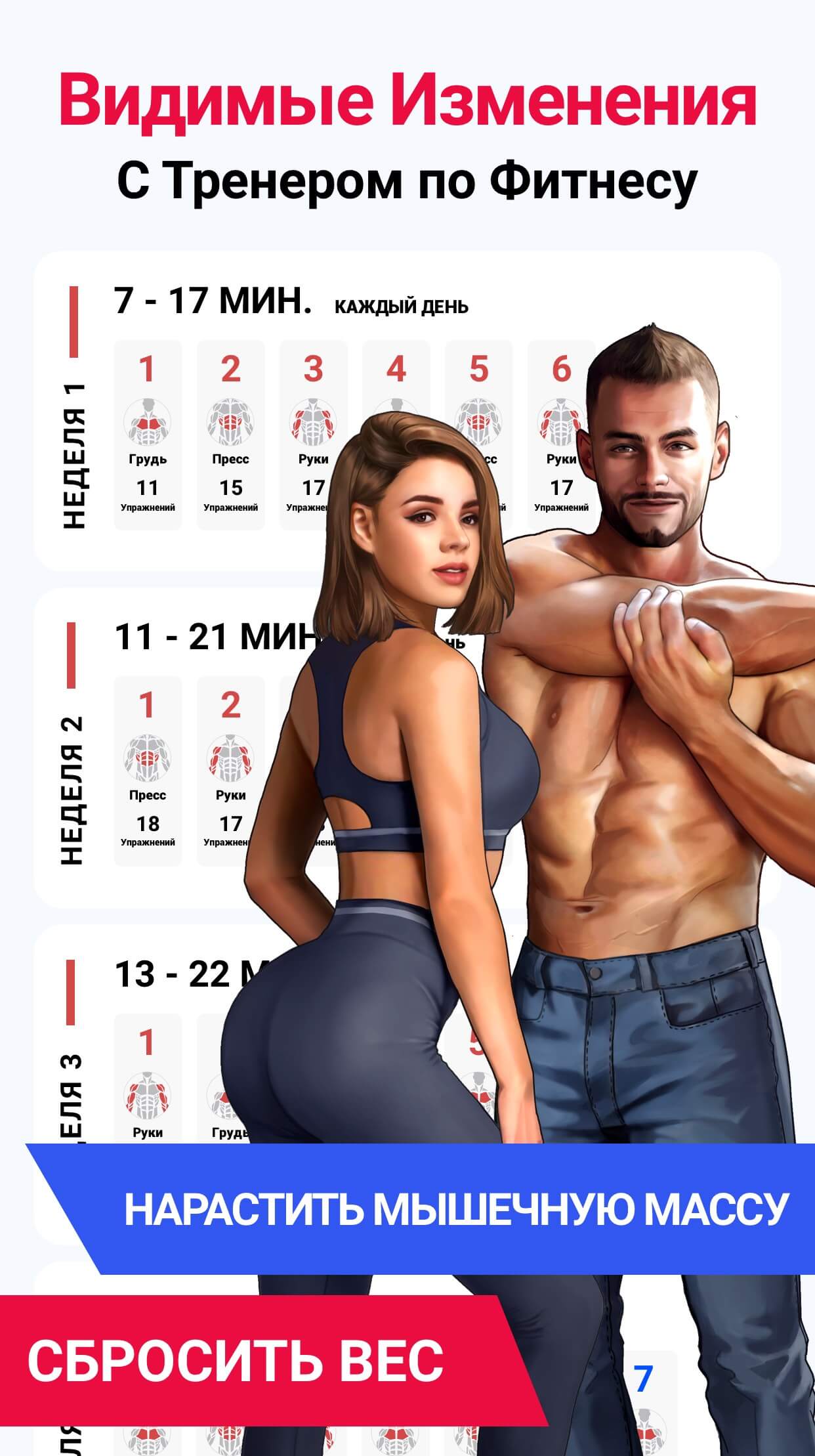 Fitness Coach - программы фитнес-тренировок на каждый день для всех основных групп мышцы. Занимаясь всего несколько минут в день, вы сможете набрать мышечную массу, сжечь жир или просто поддерживать форму. При этом нет необходимости в тренере и оборудовании. В приложении есть тренировки для пресса, груди, ног, рук, ягодиц и всего тела.