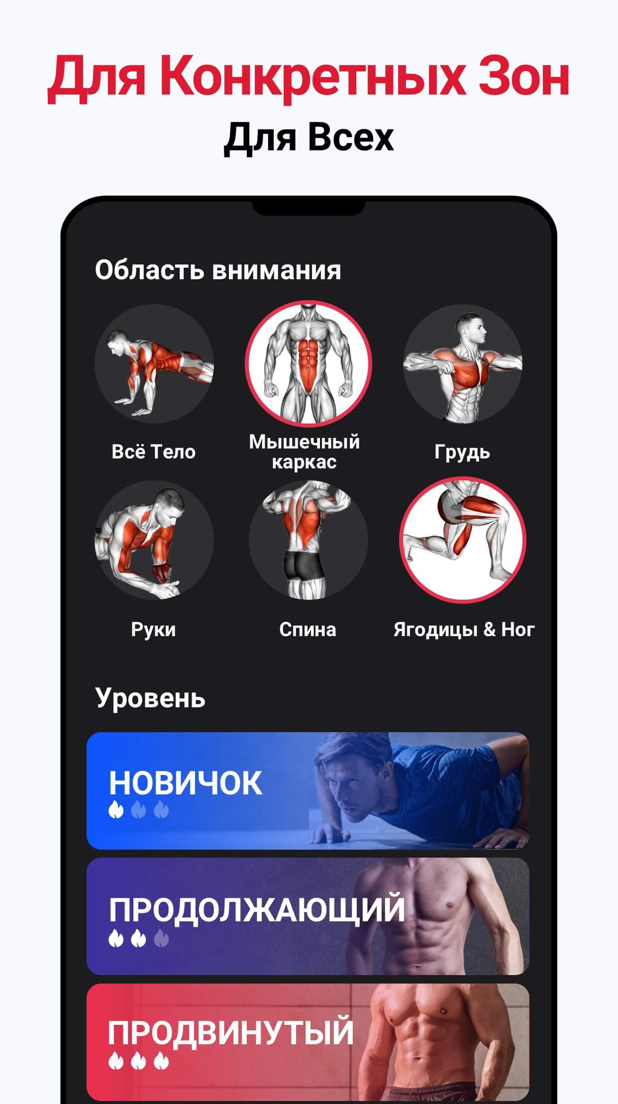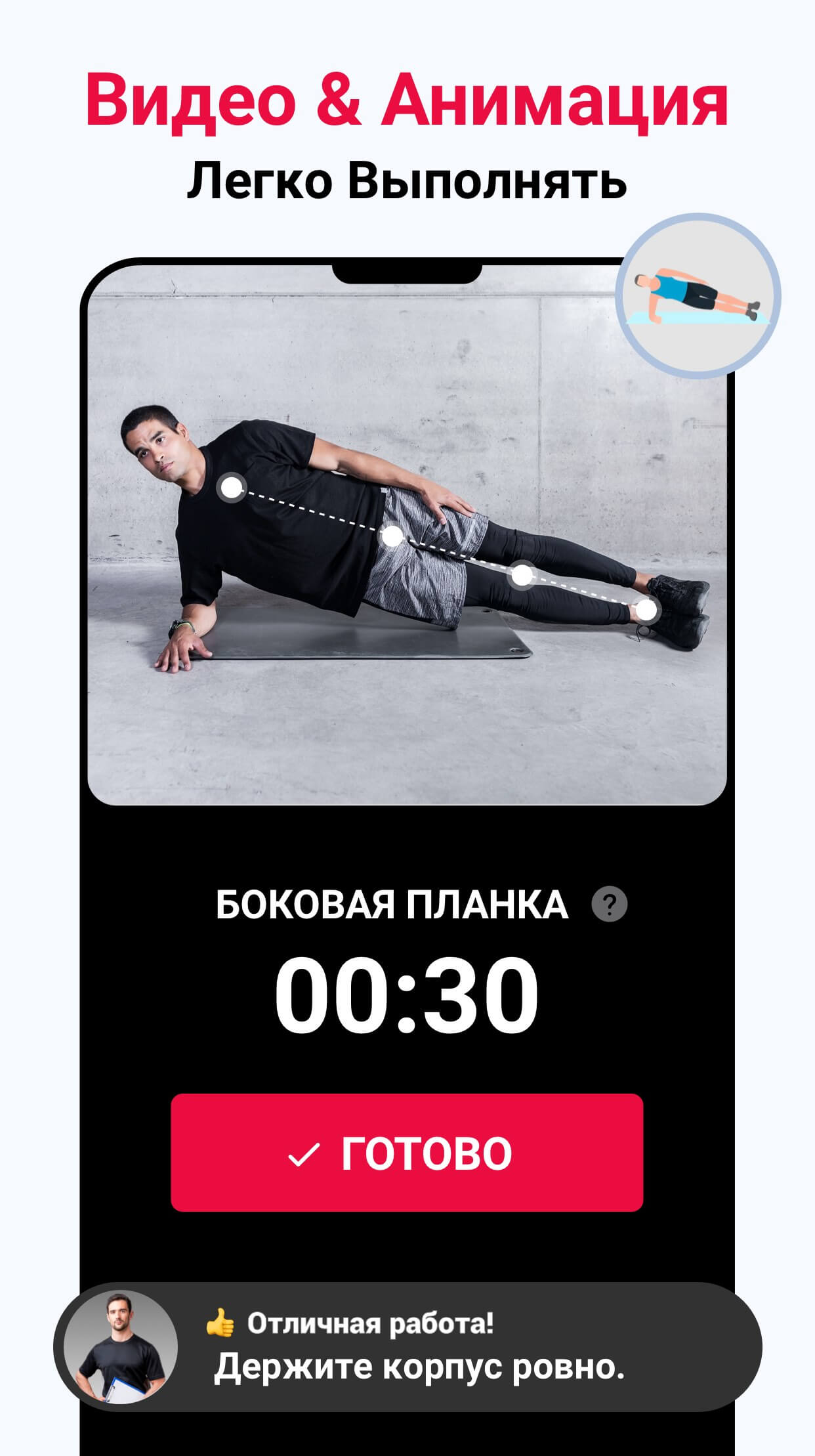 Присутствуют анимации и обучающие видеоролики для каждого упражнения, которые гарантируют, что вы всё сделаете правильно.