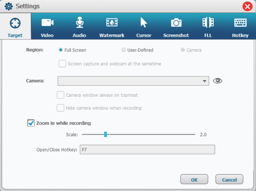 - Настройка параметров видео и звука: Пользователи могут настроить различные параметры видео, такие как качество и разрешение, а также выбрать частоту кадров в секунду (FPS). Вы также можете включить курсор в запись и добавить графический эффект для выделения щелчков мыши.