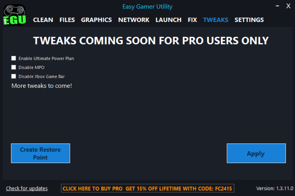 Easy Gamer Utility - это интуитивно понятное приложение, созданное специально для оптимизации производительности вашей системы во время игр.
