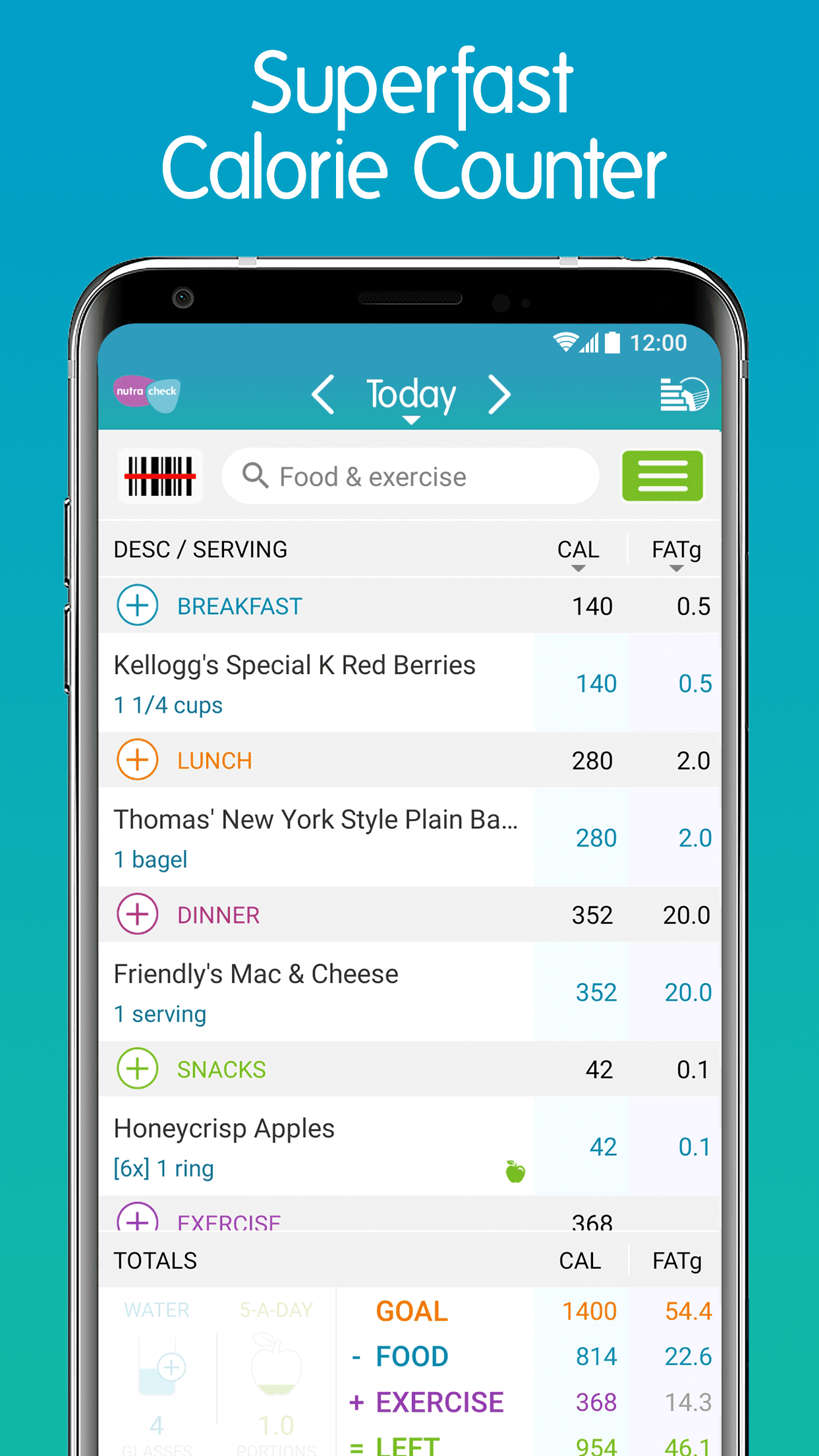 - Nutracheck Calorie Counter+ создан с учетом ваших потребностей, сокращая количество кликов до минимума и делая процесс учета калорий быстрым и эффективным.