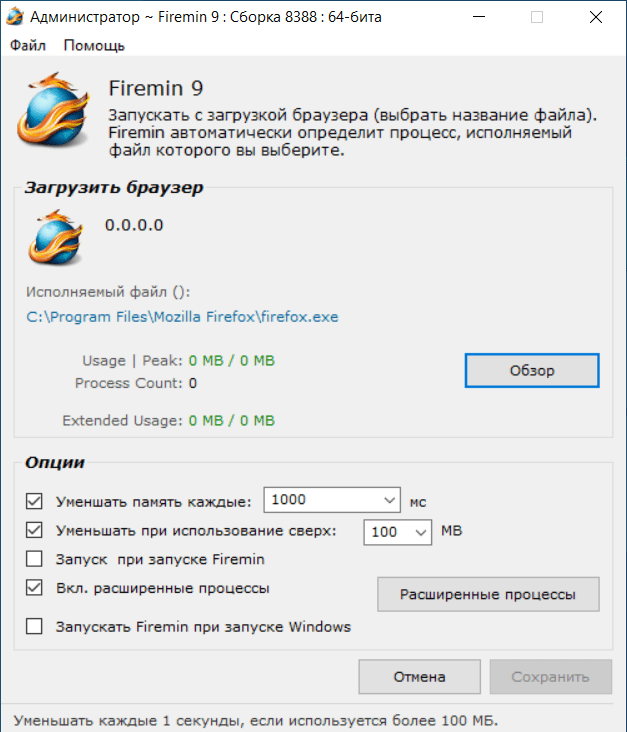 - Совместимость: Firemin можно использовать с исполняемым файлом любого браузера, не только с Firefox. Это делает ее универсальным решением для улучшения производительности любых приложений.