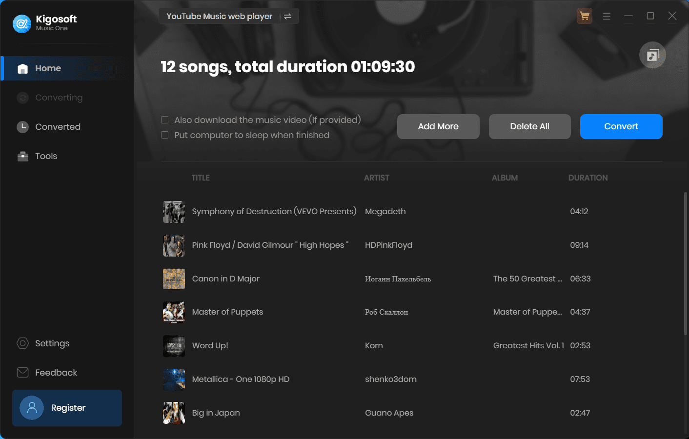 Kigosoft Music One - это надежный менеджер загрузки из Интернета, который предоставляет возможность пользователям наслаждаться своими любимыми аудиотреками в автономном режиме. Сегодня, когда большинство мультимедийных платформ переходят к онлайн-стримингу, Music One становится спасительным кругом для тех, кто хочет сохранить музыку для прослушивания без подключения к интернету.