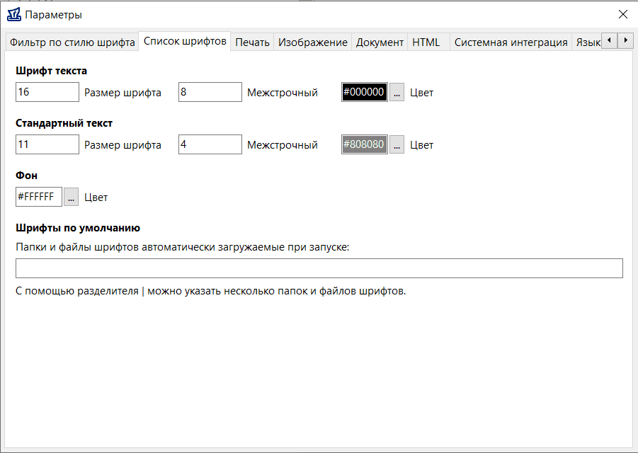 Можно настроить цвет и размер предварительного просмотра шрифта, переключиться на другой язык пользовательского интерфейса, а также удалить все выбранные шрифты из списка или все записи, кроме выбранных.