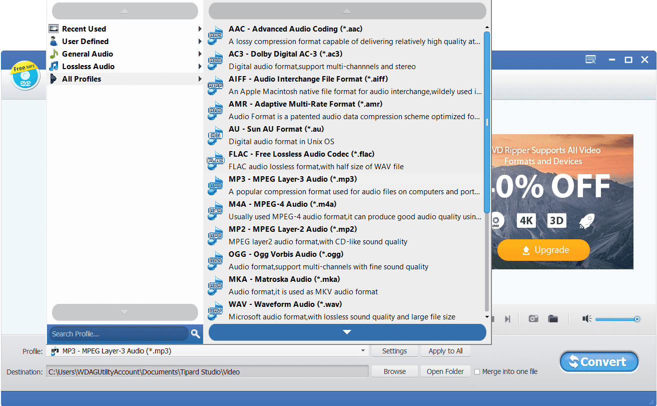 Основные возможности приложения Tipard DVD to MP3 Converter: