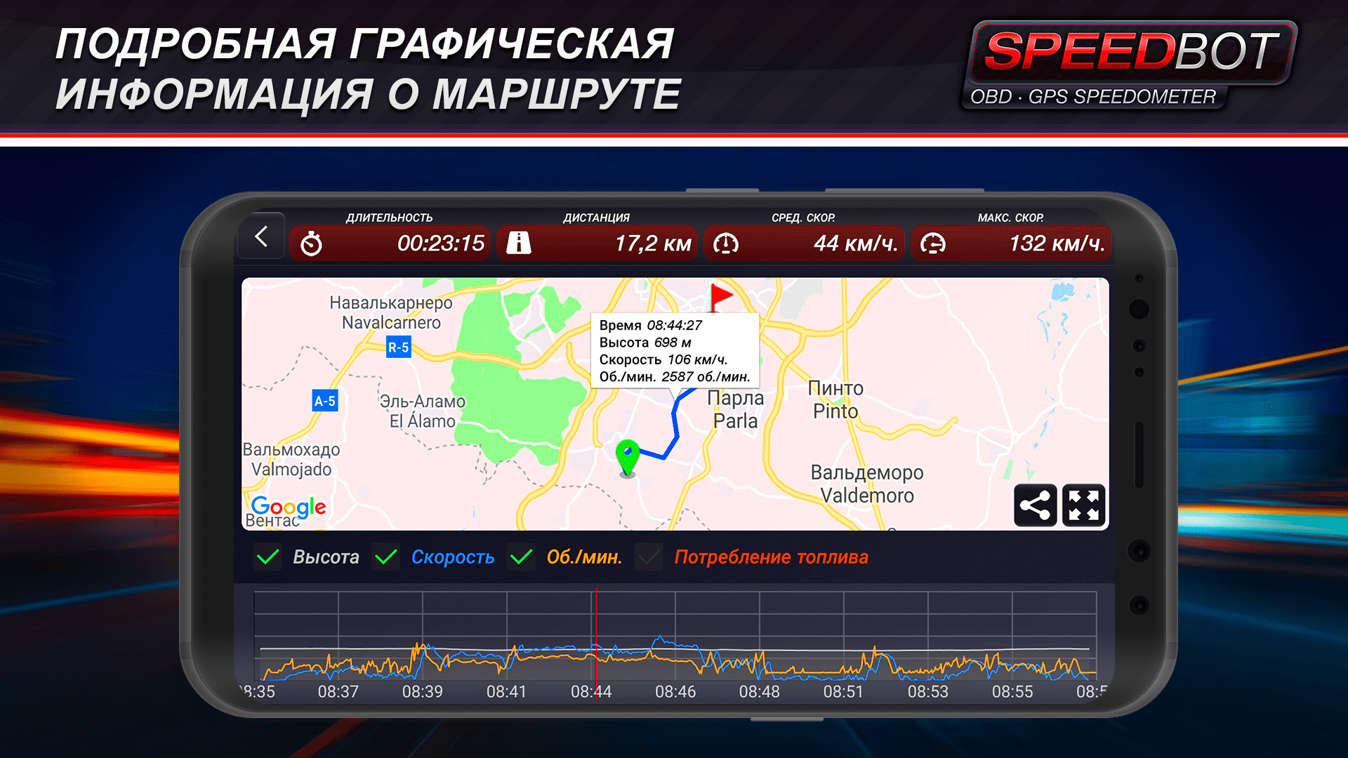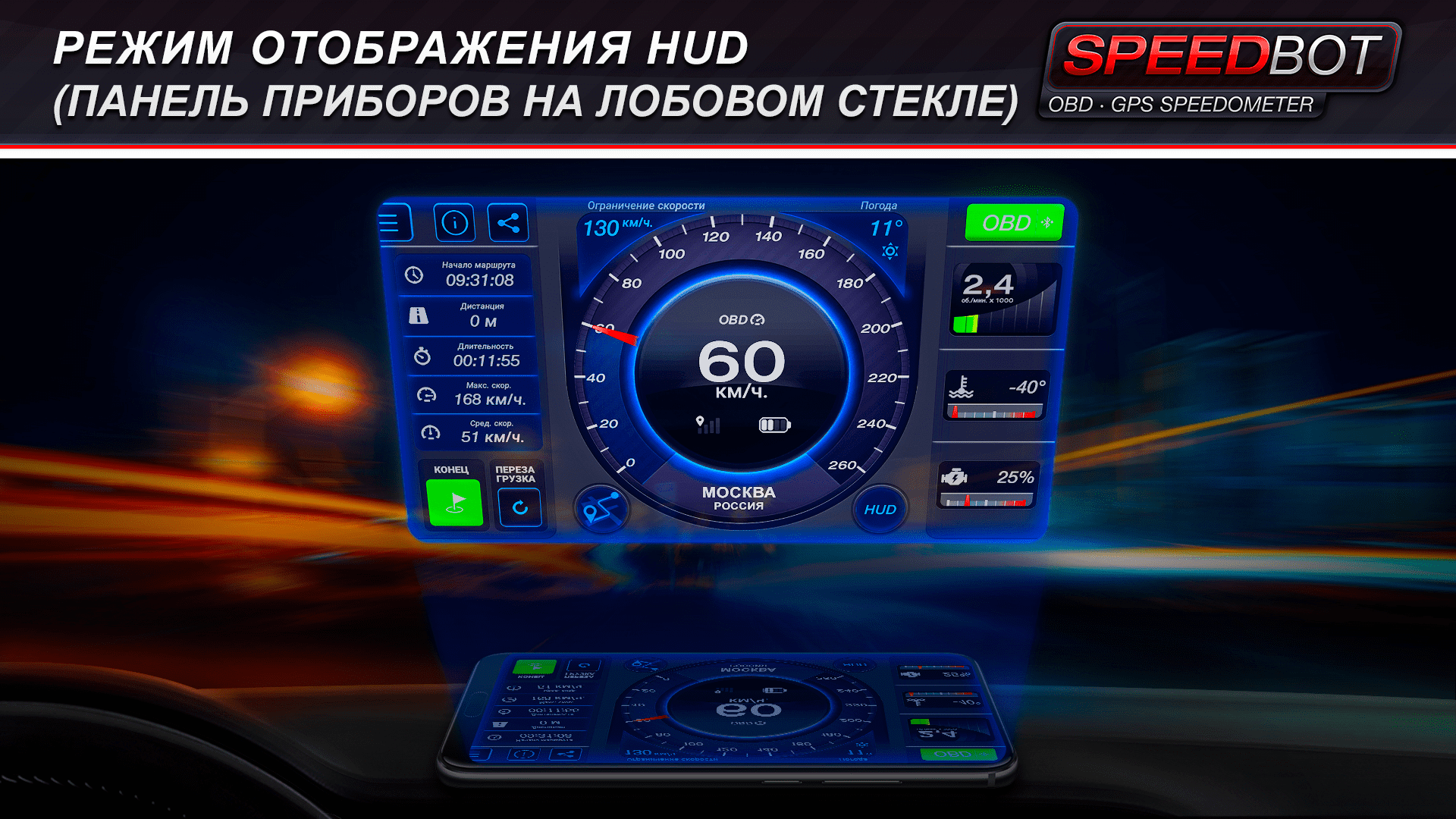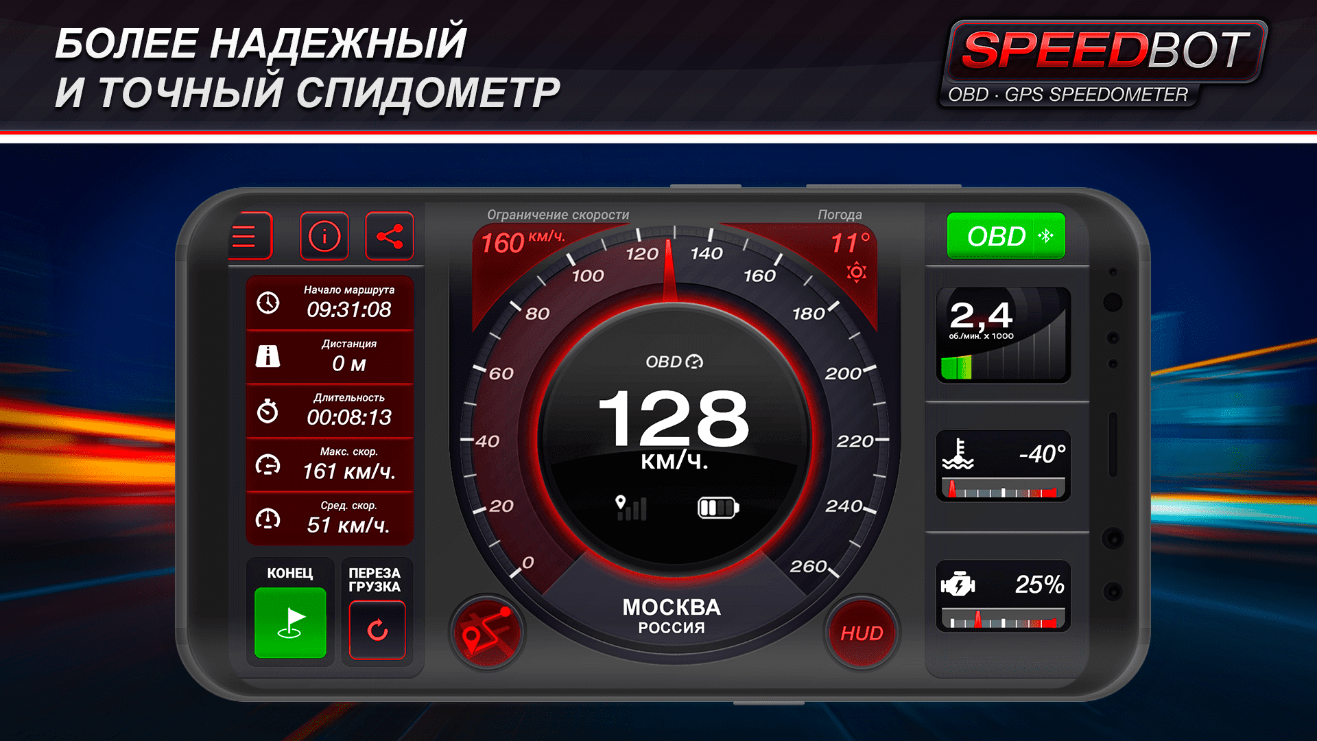 Speedbot – это приложение, которое превращает ваше мобильное устройство в мощный бортовой компьютер с высокоточным спидометром GPS и множеством других полезных функций. С его помощью вы всегда будете в курсе своей скорости и ключевых параметров вашего автомобиля в реальном времени.