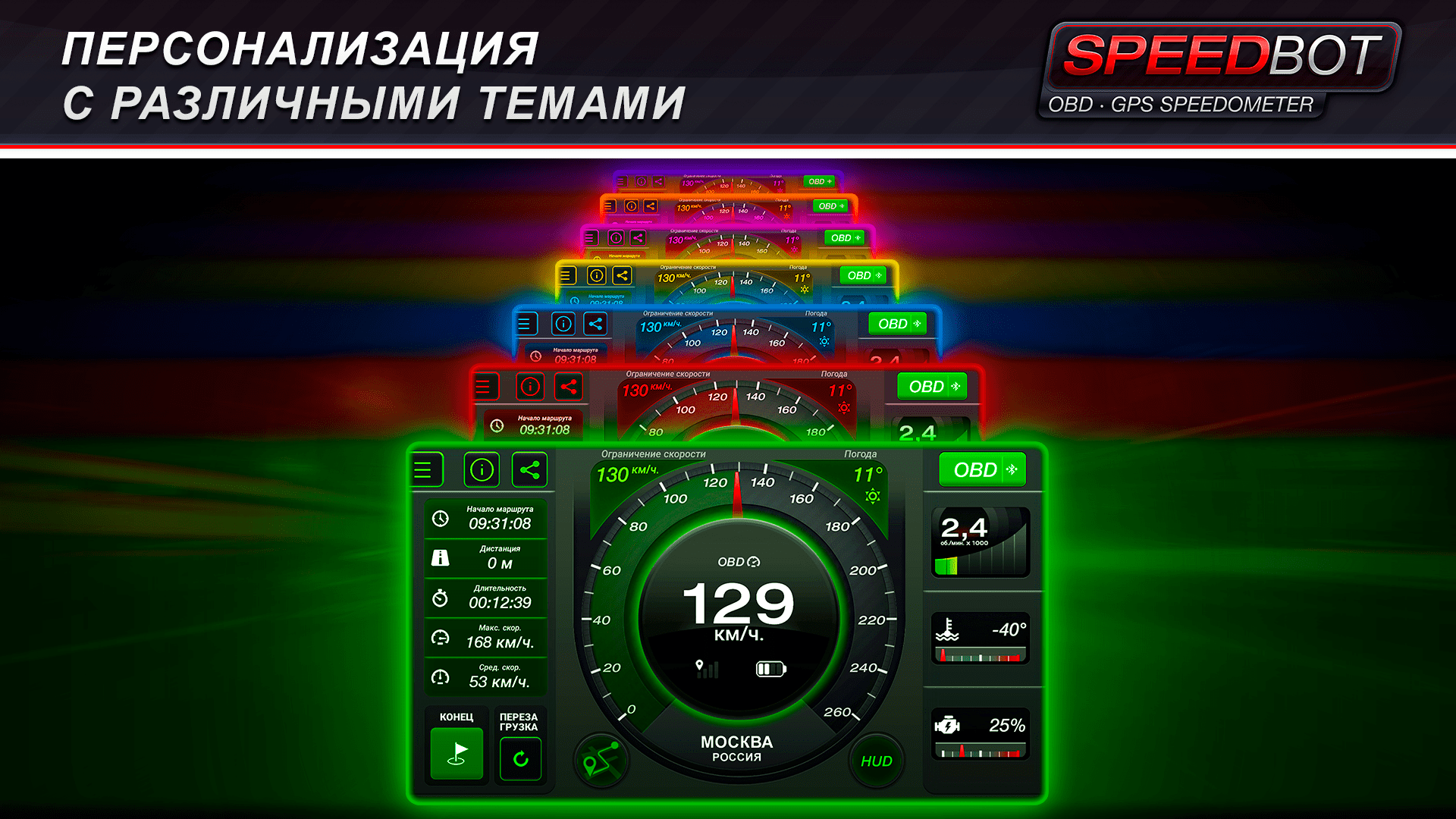- Отображение скорости в различных единицах измерения, режим HUD для проекции на лобовое стекло, персонализация с различными темами и многое другое.