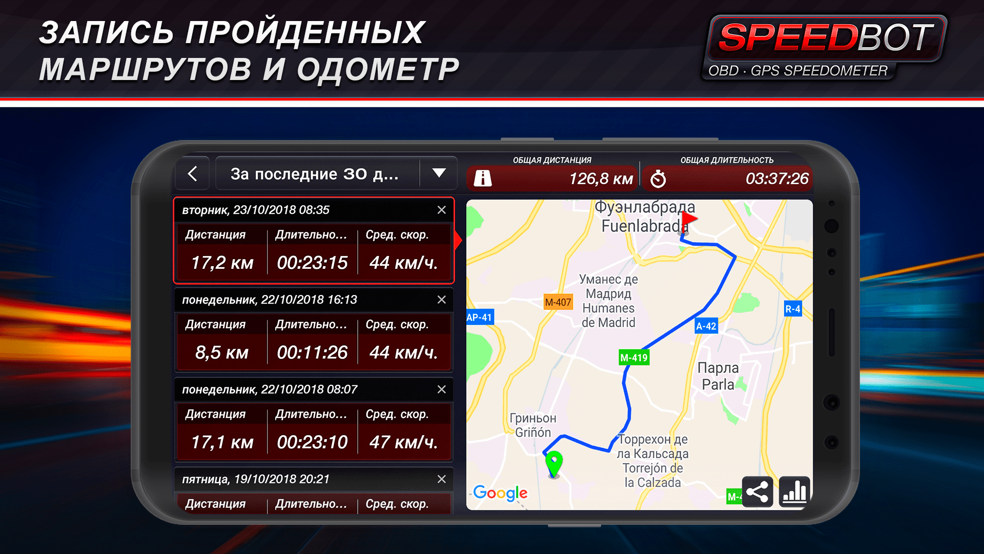 - Запись маршрутов и одометр: Сохраняйте информацию о ваших перемещениях и подробные данные о пройденных маршрутах.