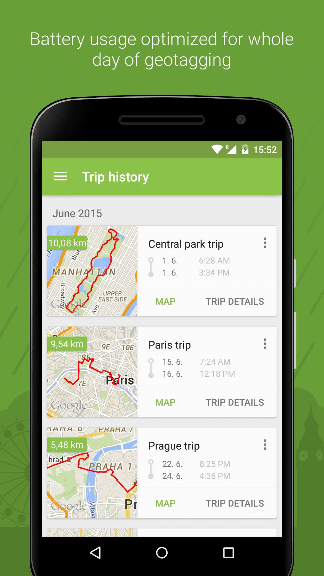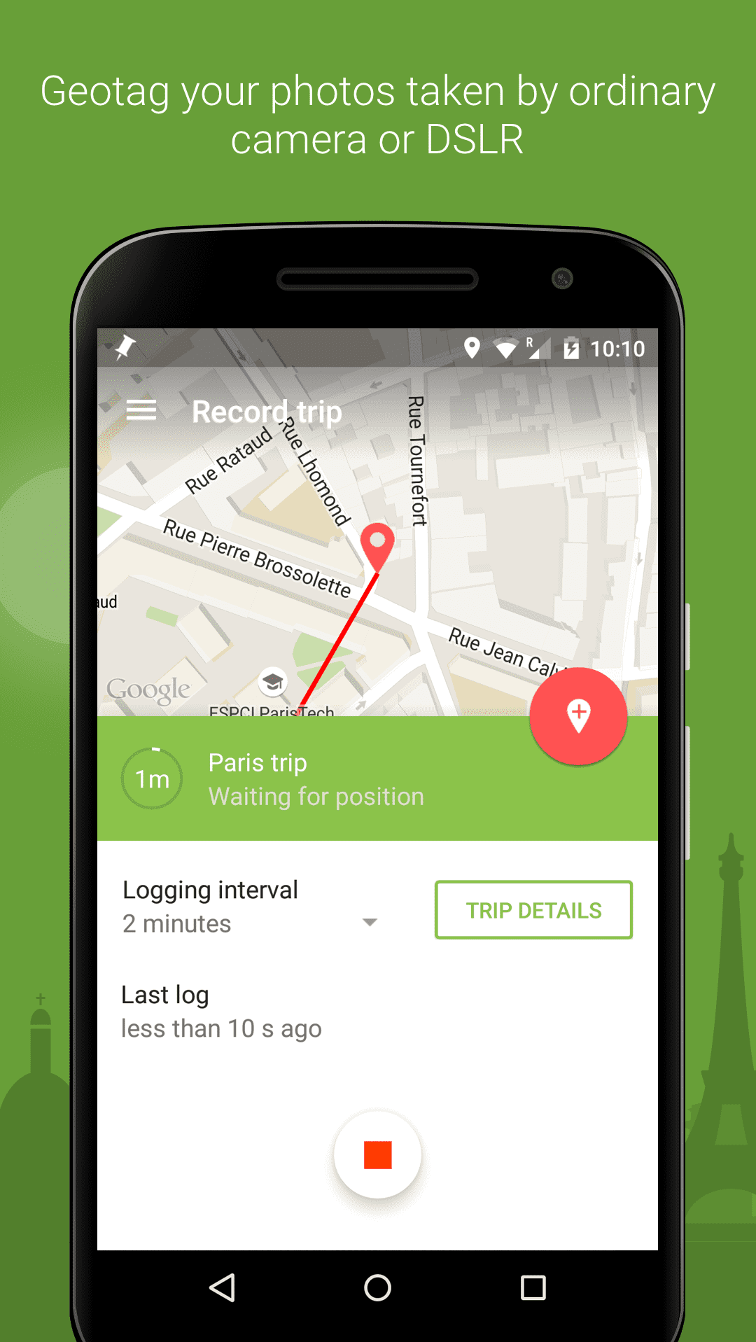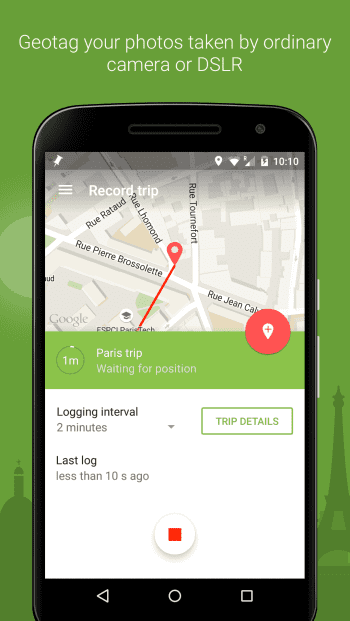 - Оптимизация использования батареи для продолжительного геотеггинга в течение всего дня.