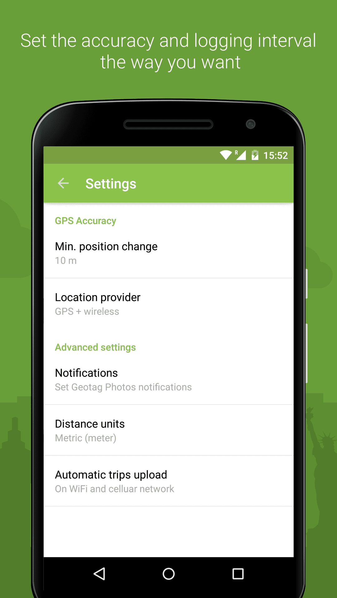 - Настройка интервала записи и точности геотеггинга под ваши нужды.