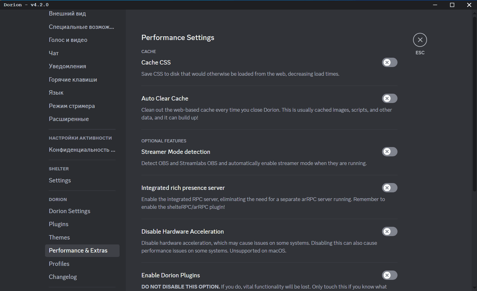 - Поддержка плагинов: Dorion поддерживает плагины, которые позволяют модифицировать ваш клиент, добавляя новые функции и возможности. Используйте встроенный переключатель профилей для управления плагинами по вашему усмотрению.