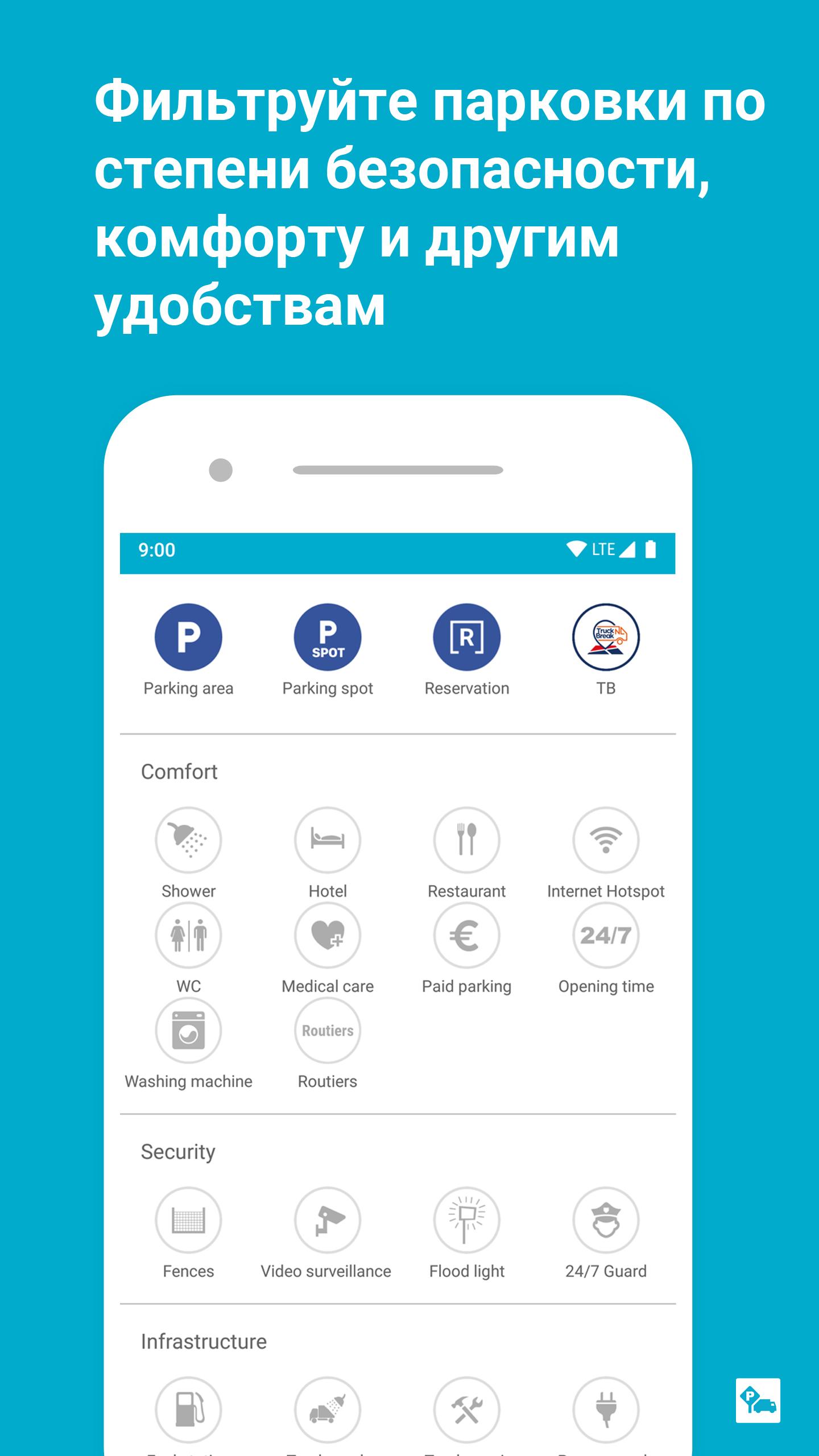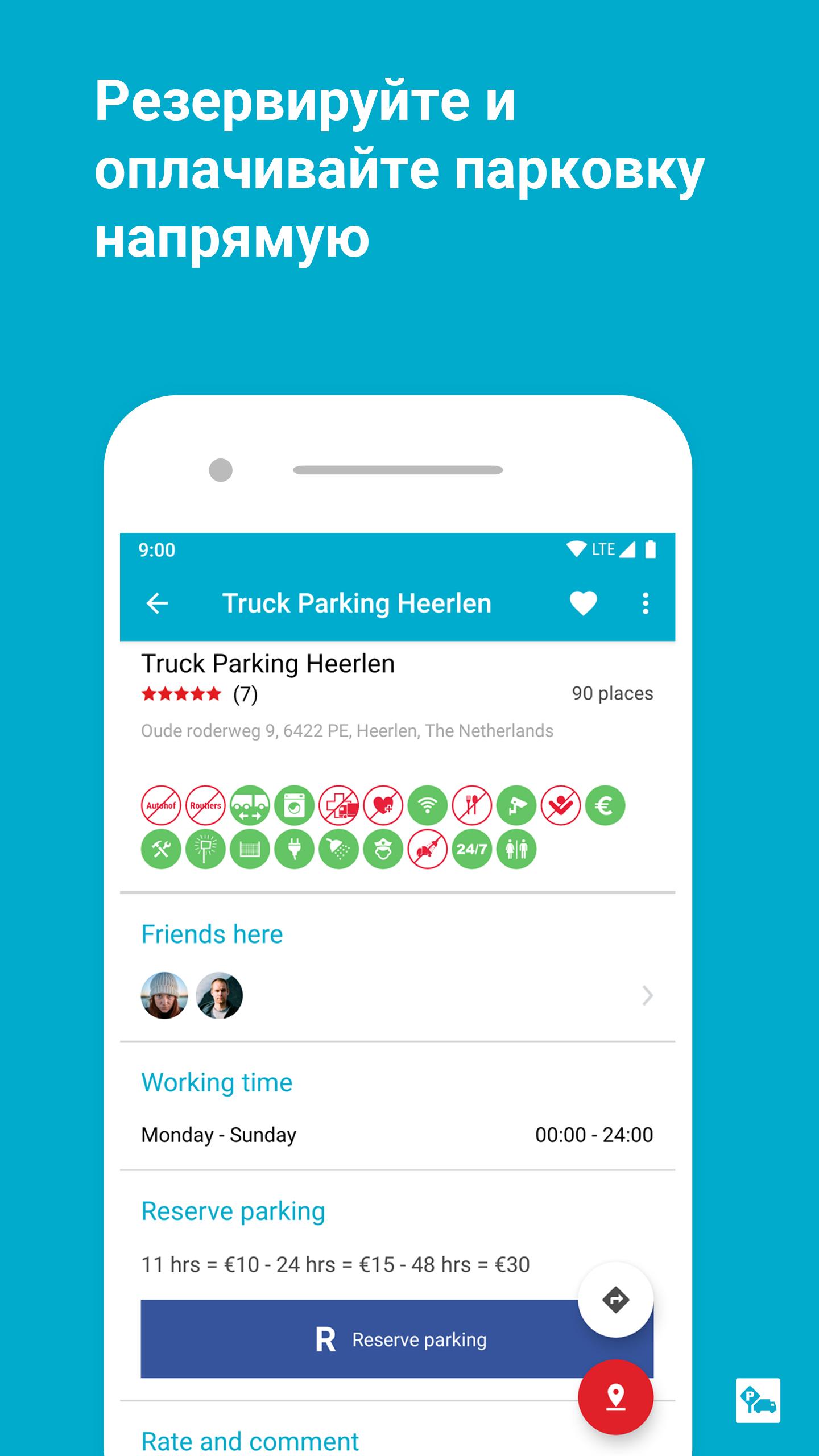 Основные возможности приложения Truck Parking Europe:
