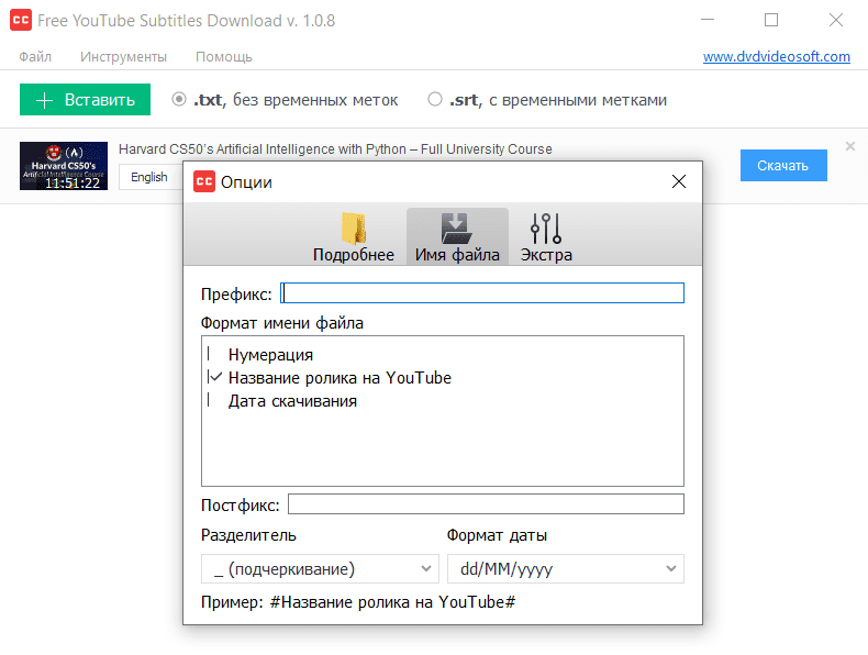 Список основных возможностей Free YouTube Subtitles Downloader: