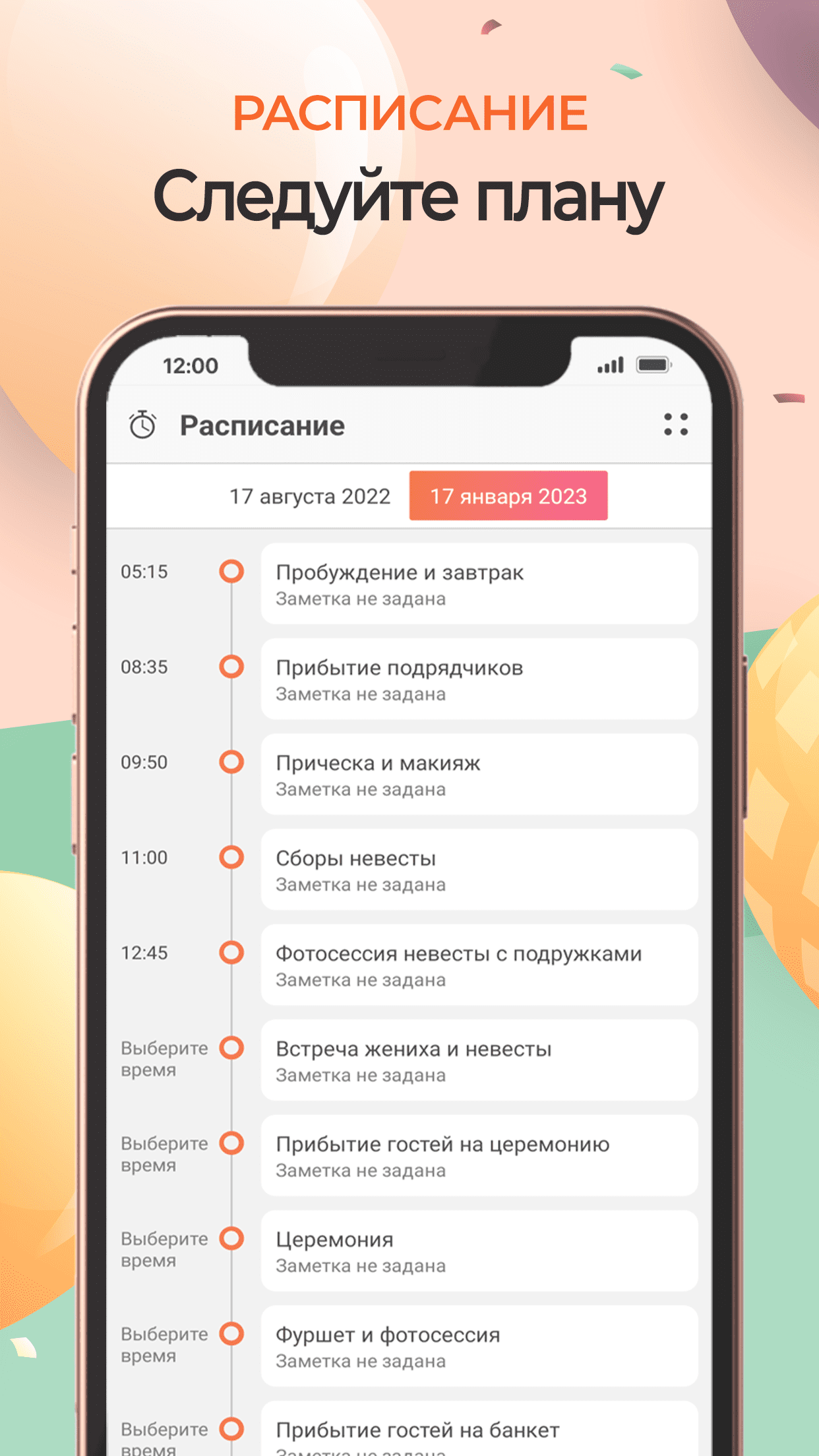 - Совместное планирование: Приглашайте друзей и помощников к планированию, управляйте мероприятием с разных устройств и аккаунтов. Данные синхронизируются мгновенно.