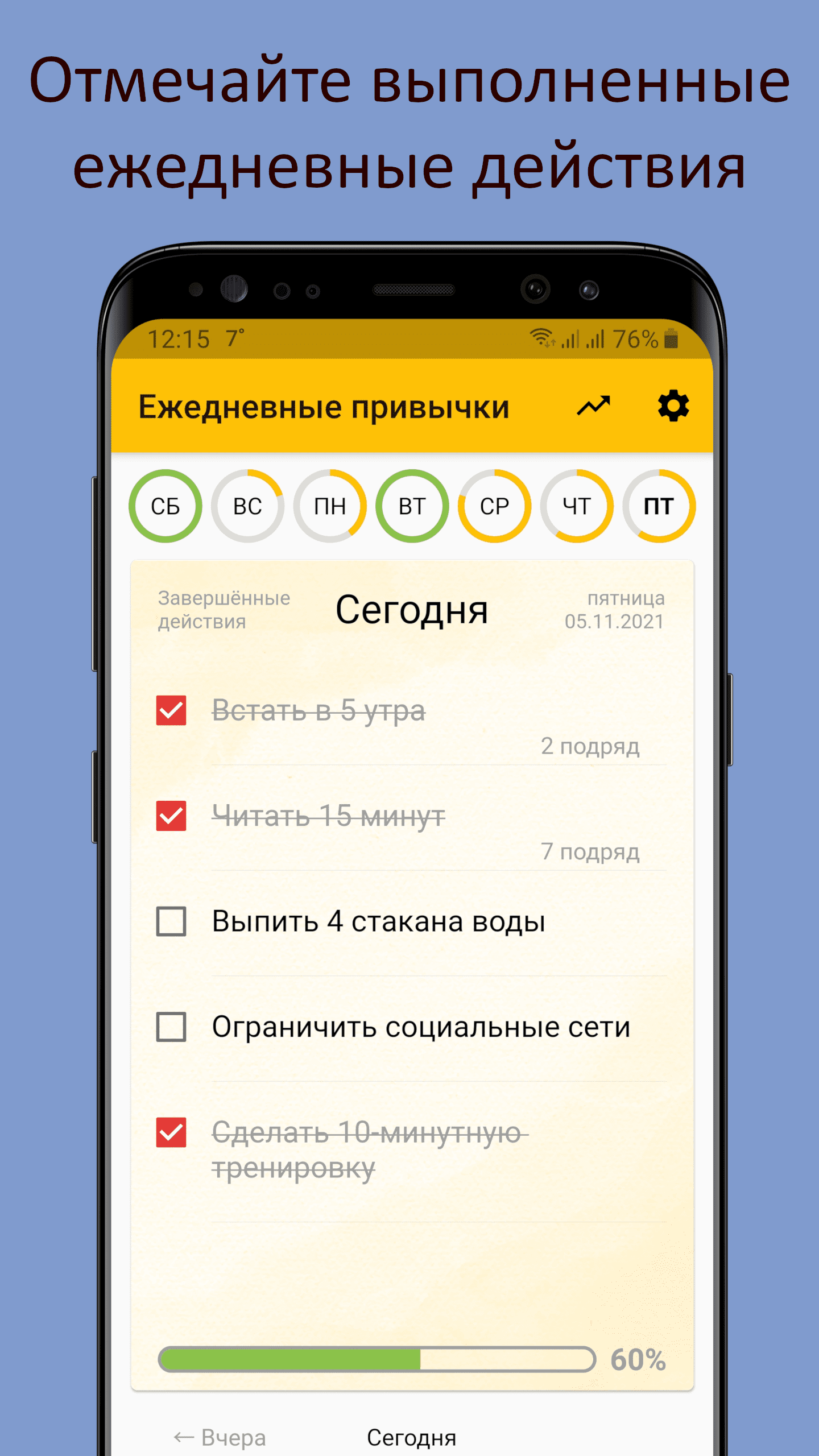 Трекер ежедневных действий для Android