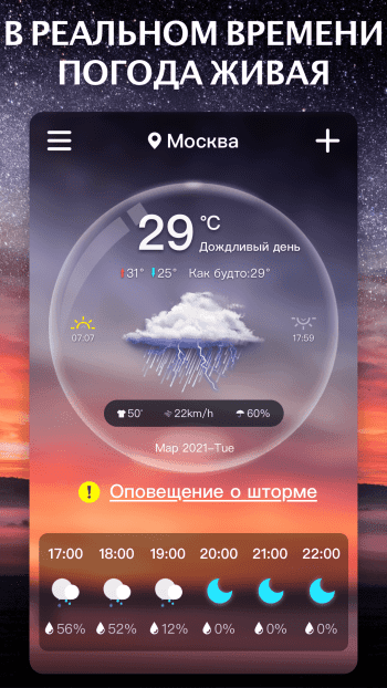 - Информация о погоде в режиме реального времени для любого выбранного места.
