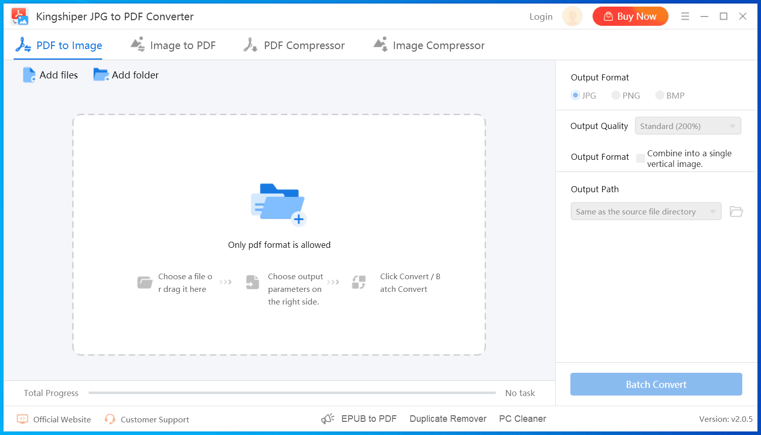 Kingshiper JPG to PDF Converter - это удобная и функциональная программа, предназначенная для работы с изображениями и PDF-документами. Несмотря на свое название, данное приложение не ограничивается только преобразованием JPG-файлов в PDF, оно поддерживает множество графических форматов и PDF-документов, что делает его универсальным инструментом для работы с файлами. Kingshiper JPG to PDF Converter позволяет не только конвертировать изображения в PDF и обратно, но и эффективно сжимать файлы для экономии дискового пространства, сохраняя при этом высокое качество.