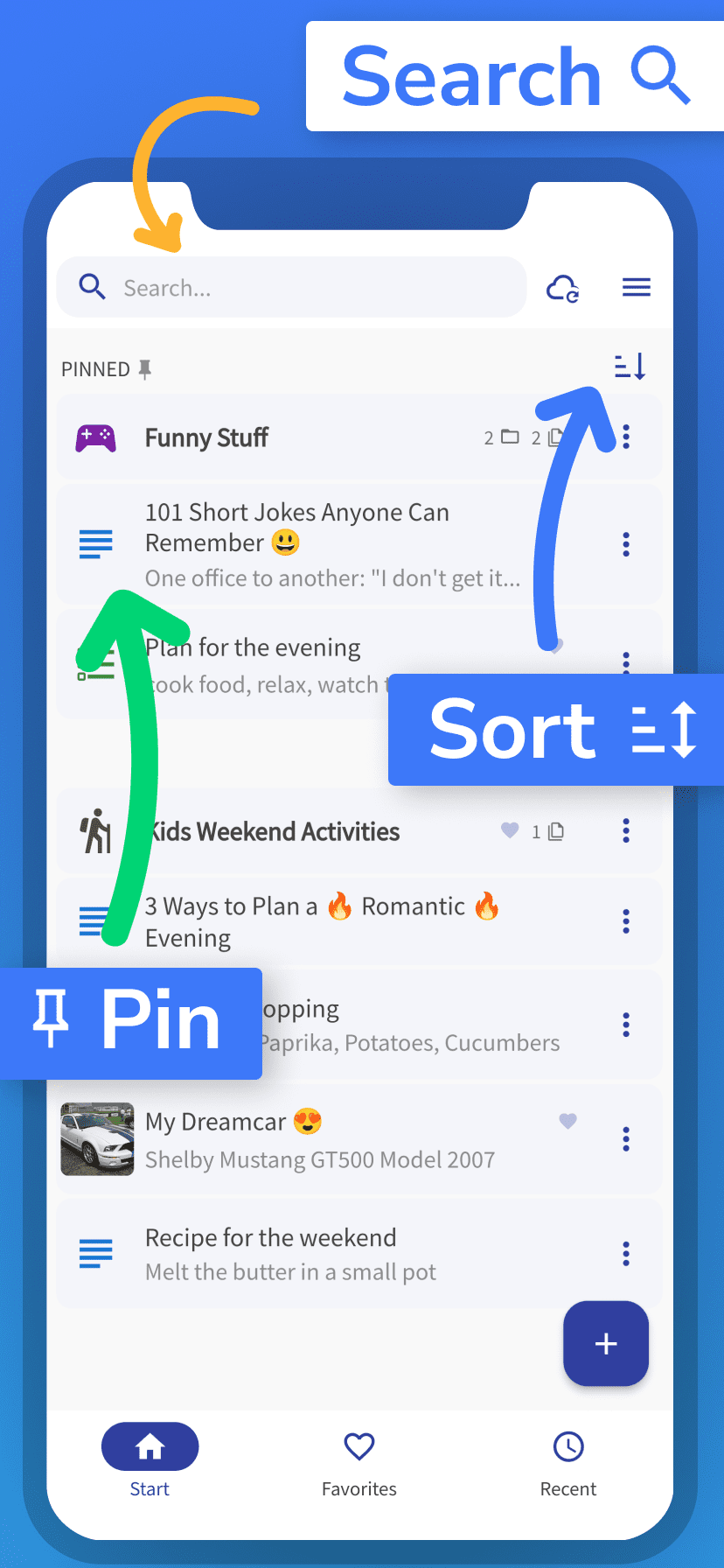 Основное внимание уделено удобству работы с заметками: приложение поддерживает поиск по тексту, позволяет закреплять важные заметки, а также предлагает список избранных и последних редактируемых записей для быстрого доступа. Folino можно использовать в офлайн-режиме, что делает его доступным даже без подключения к Интернету. Для пользователей, которые хотят синхронизировать свои заметки между разными устройствами, доступна функция ручной синхронизации через Google Drive. Также предусмотрены опции резервного копирования данных и их последующего восстановления.