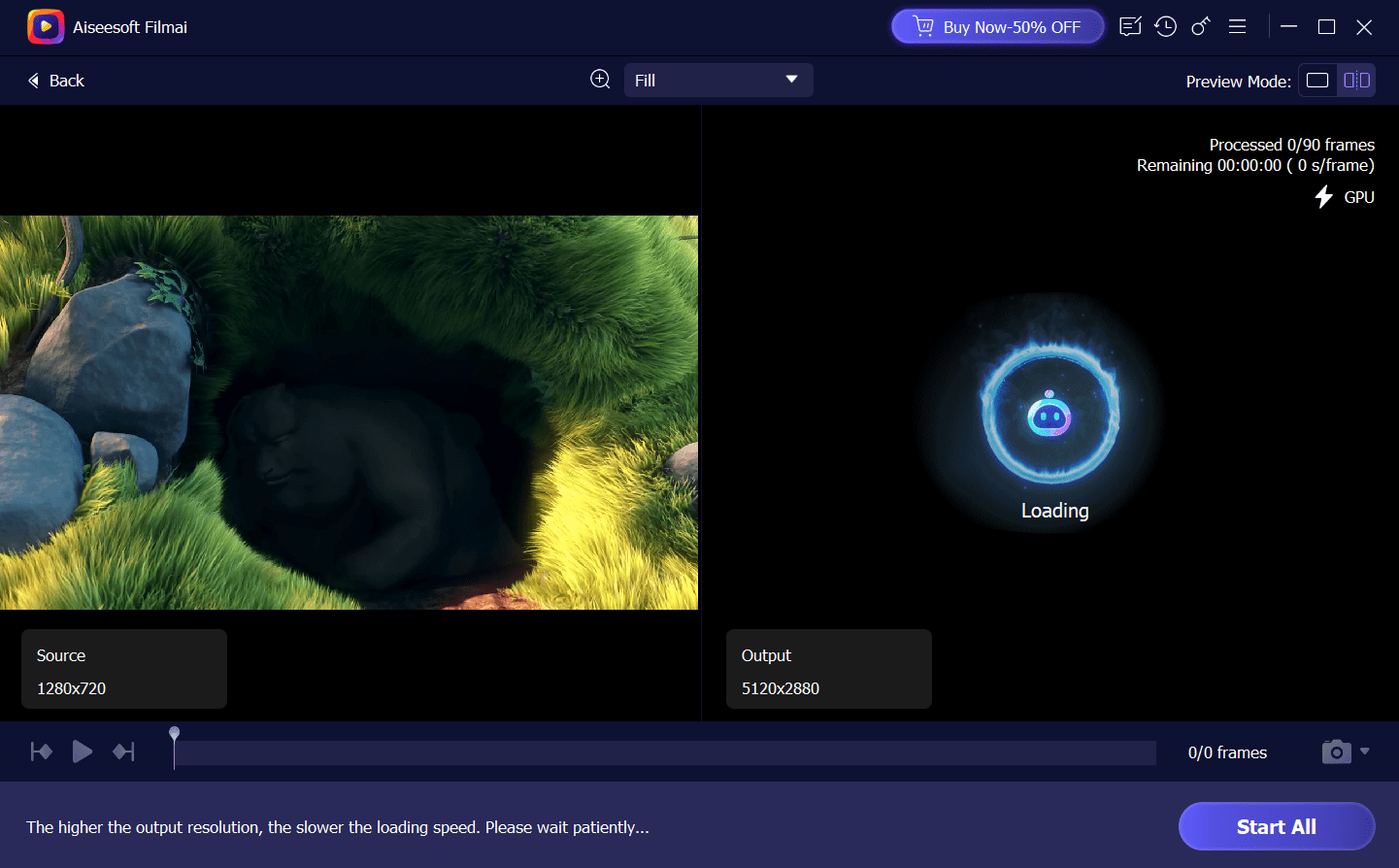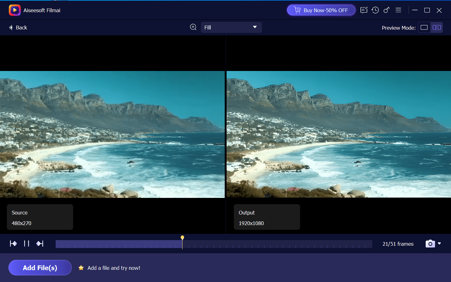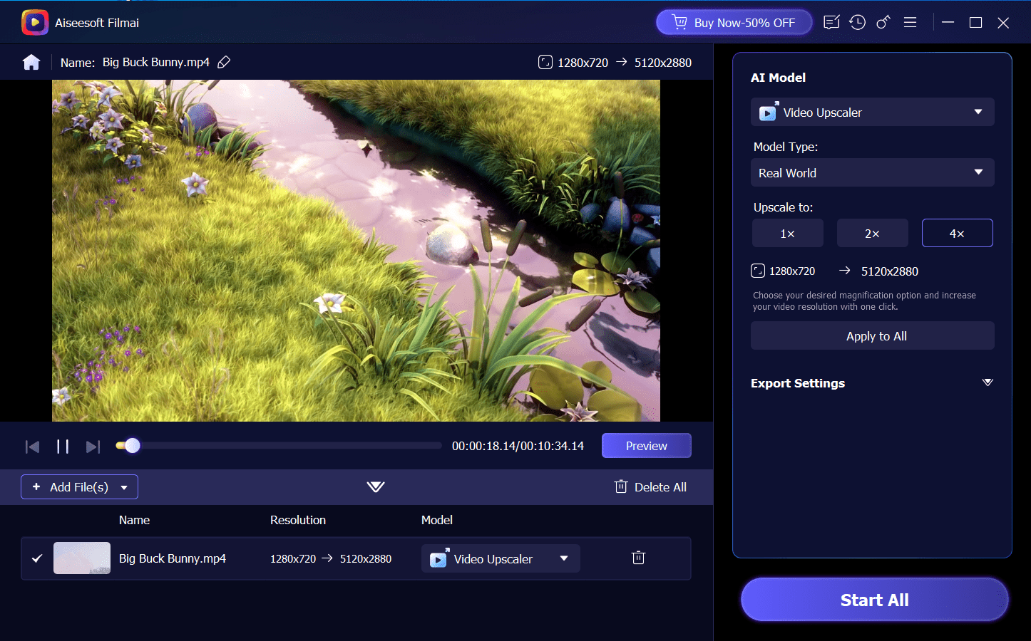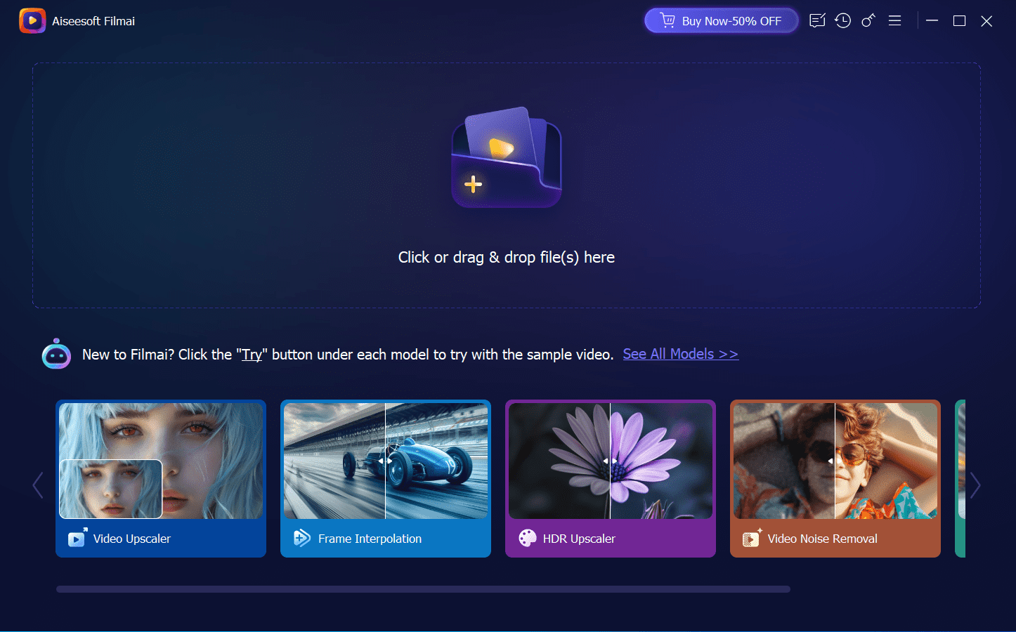 Aiseesoft Filmai – приложение, использующее технологии искусственного интеллекта для улучшения качества видео. Программа предлагает удобные инструменты для повышения разрешения, стабилизации, денойзинга и улучшения воспроизведения. Интерфейс приложения разработан таким образом, чтобы даже начинающие пользователи могли быстро освоить основные функции.