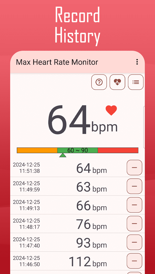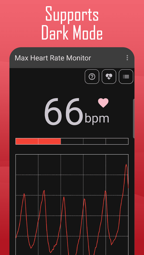 Max Heart Rate Monitor — приложение, которое позволяет точно и удобно измерять частоту сердечных сокращений (ЧСС) с помощью камеры телефона. Для измерений программа использует камеру и датчик освещенности, чтобы отслеживать микроскопические изменения капиллярного кровотока, которые вызывает пульсация крови при каждом ударе сердца. В процессе измерения достаточно просто прикоснуться пальцем к камере, и приложение автоматически рассчитывает и отобразит количество сердечных сокращений в минуту (BPM).